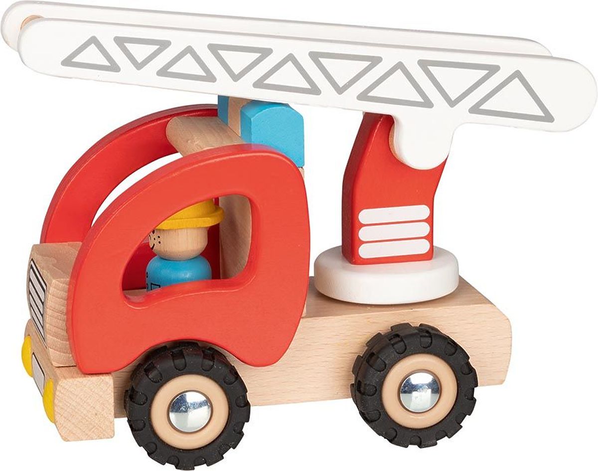 Stát se v budoucnu hasičem je snem mnoha chlapců. Pokud váš chlapec sní o tomtéž, jste na správném místě. Hasičské auto od firmy Goki je skvělým návrhem na hračku pro malého muže. Je celé vyrobeno ze dřeva, pouze kola mají gumový povrch. Auto řídí dřevěný hasič. Na korbě má k dispozici žebřík, se kterým vyráží na záchranu! Žebřík lze nastavit pod různým úhlem a také s ním otáčet. Skvělá zábava zaručena. Díky hře dítě rozvine svou představivost o práci hasiče. Kdo ví, možná se jím v budoucnu stane? Celé je to udržováno v krásné barevnosti. Zabalené v elegantním balení.