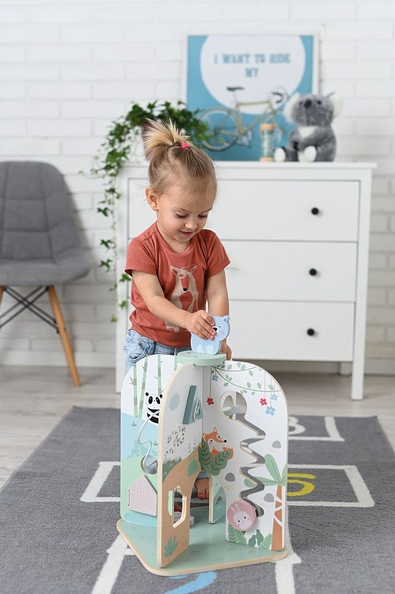 Neméně důležitý je také ekologický charakter - hračka je vyrobena z překližky a dřeva a má krásný design. Jemná barevnost a roztomilá zvířátka jsou její hlavní přednosti.