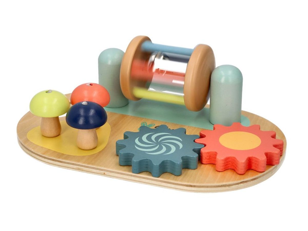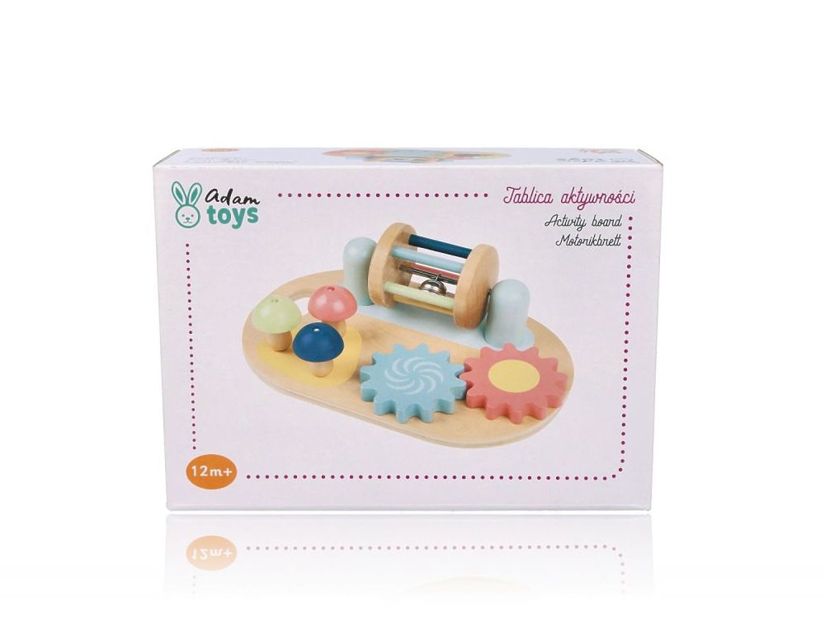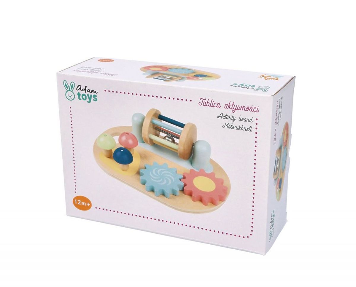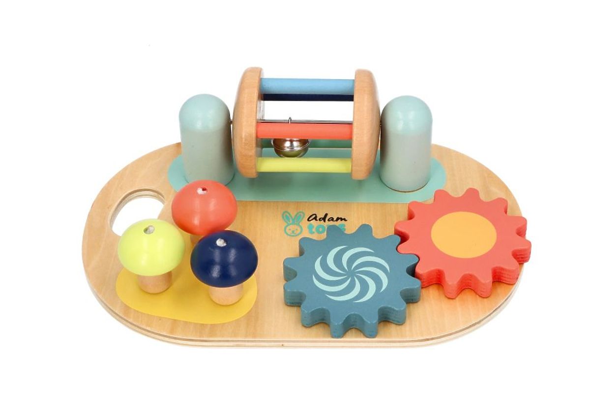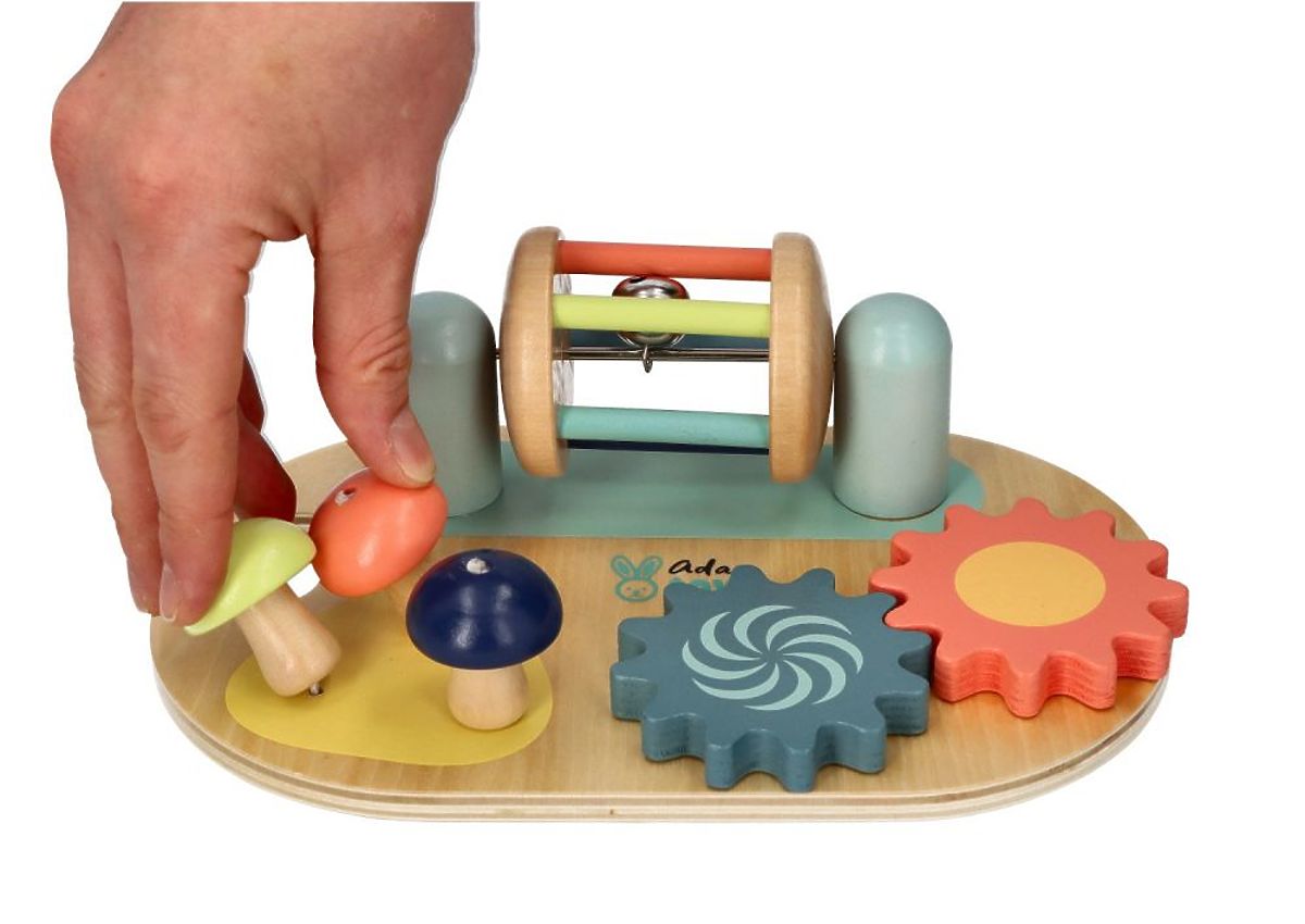 Všechny atrakce byly připraveny tak, aby zaujaly dítě, povzbudily k objevování a cvičily manuální zručnost. Tabule je vyrobena převážně ze dřeva (s výjimkou kovového zvonečku a prutu) a je určena k položení na rovnou plochu nebo k držení v rukou díky kulaté rukojeti. Právě takové hračky přinášejí dětem největší radost, kdy je potřeba více úsilí, aby něco vydalo zvuk nebo se pohybovalo, než pouhé stisknutí tlačítka u plastových ekvivalentů. To je pravá magie značky Adam Toys!