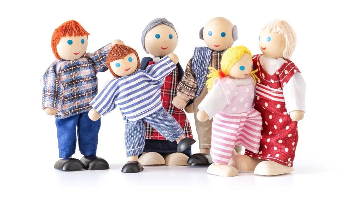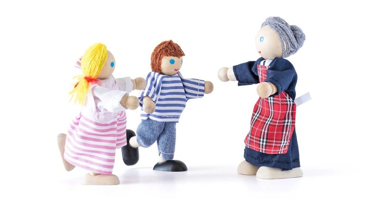 Dřevěné loutky, oblečené v látkových oblečcích. Nohy a ruce loutek jsou vyrobeny z tvrzeného provazu, který udržuje úhel ohybu, přičemž se snadno přizpůsobuje ohybům. Velká třígenerační rodinka bude skvělou zábavou pro nejmenší!