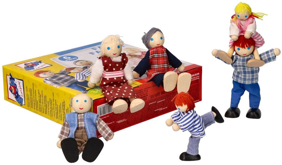 Zábavná, dřevěná rodinka loutek je ideálním doplňkem pro domečky pro panenky a sady s nábytkem.