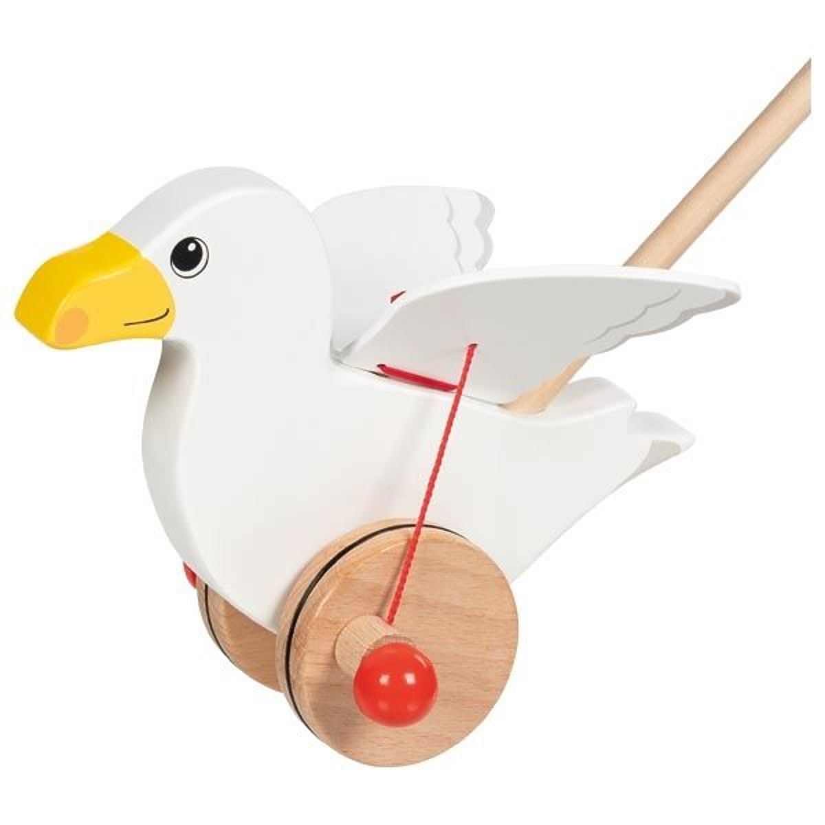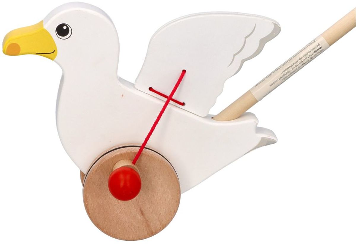 Dřevěný racek Jonas k tlačení s mávajícími křídly. .. více
