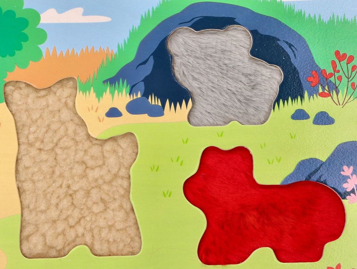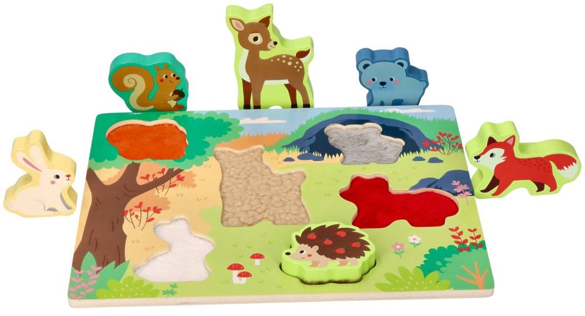Vnitřek každého otvoru pro puzzle je vyložen měkkým materiálem, jehož barva a textura se blíží srsti daného zvířátka. Navíc si děti mohou s kostkami hrát samostatně a vytvářet z nich své vlastní příběhy a představení. Hra s předměty různých textur stimuluje nejen hmat, ale také vizuální vnímání. Skládačka je vyrobena z lakovaného dřeva v příjemné barevnosti. Hračka skvěle rozvíjí dětskou představivost, učí koncentraci a pozorovacím schopnostem. Dítě také procvičuje manuální dovednosti, zejména prstíky.