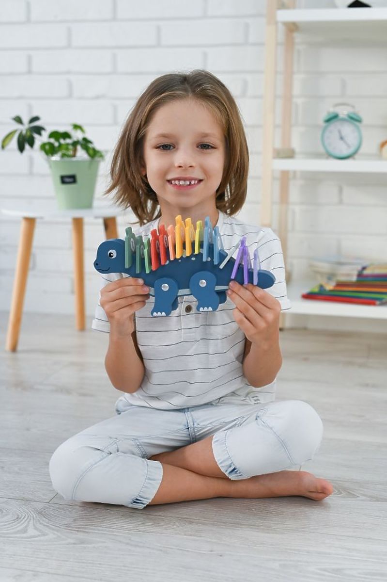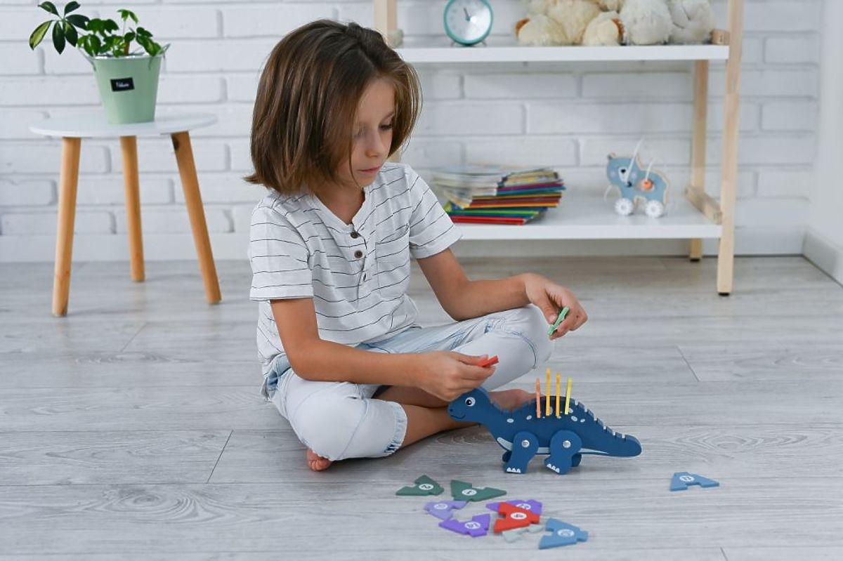 Dřevěný dinosaurus s číslicemi pro snadné učení počítání. .. více