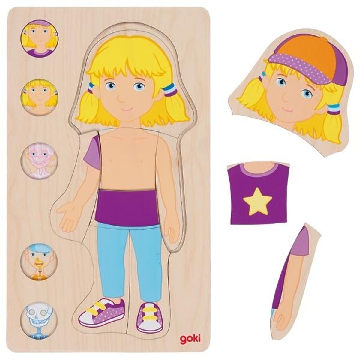 Vrstevné puzzle jsou produkt, který je u nás téměř od samotného vzniku obchodu. Tentokrát představujeme puzzle, které u nás ještě nebyly. Výrobce hraček Goki vytvořil vrstevné puzzle představující lidské tělo - zevnitř. Ano! Dobře jste slyšeli. Skládačka se skládá z platformy, která je rozdělena do 6 vrstev, které představují: