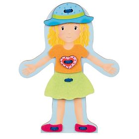 Seznamte se s Justynkou. Justynka ráda tráví čas venku a dělá mnoho zajímavých věcí na zahradě. Justynka také miluje pečení lahodných koláčů, ale jak to bývá v kuchyni a na zahradě, často se při tom zašpiní. Proto často mění oblečení ;-) Díky šněrování dítě procvičuje přesnost ruky, pohybovou koordinaci a navíc šněrování a manuální práce tohoto typu pozitivně ovlivňují rozvoj mozku. Dítě se navíc nenudí, protože může volně experimentovat a převlékat figurku mnoha způsoby.