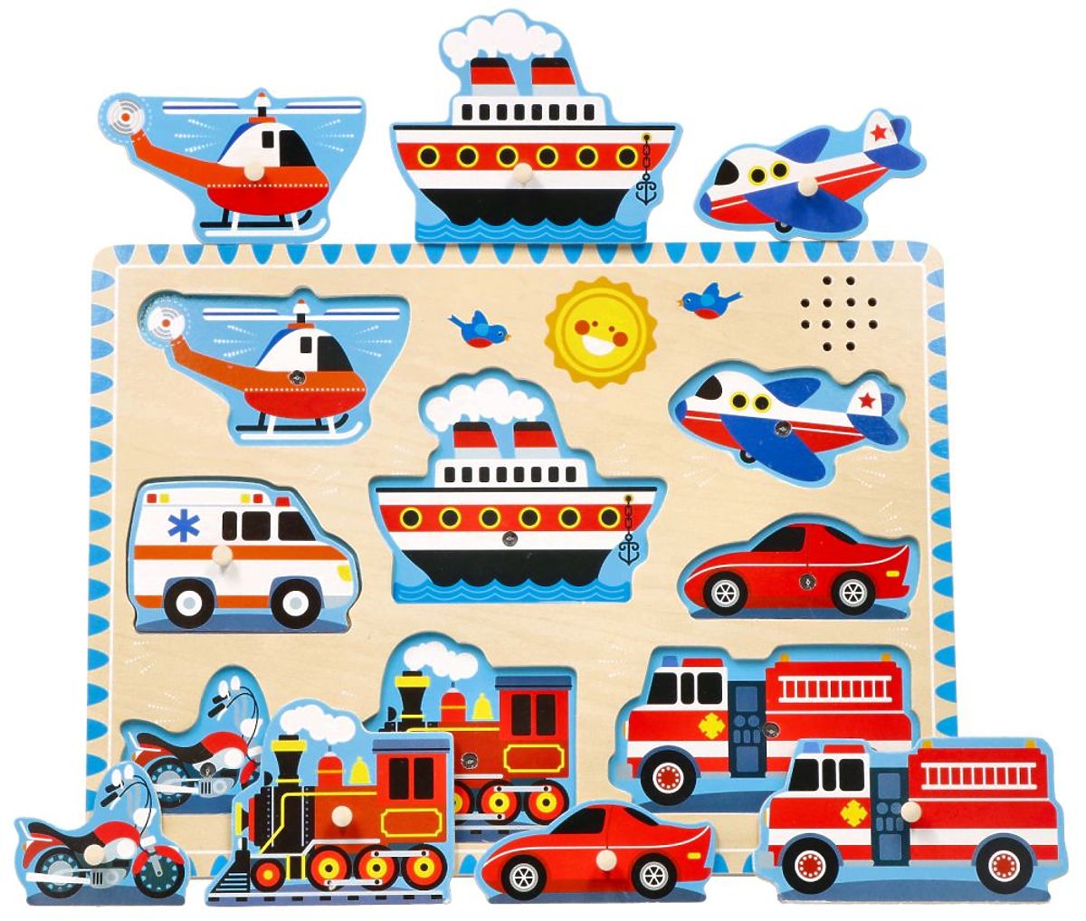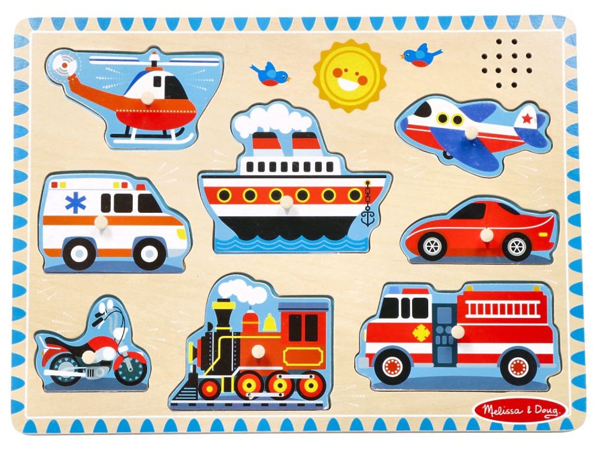 Dítě si při hraní se skládačkou přizpůsobuje dílky prázdným místům a po umístění jednotlivých vozidel na jejich místa uslyší zvuk. Zvuk je přizpůsoben danému vozidlu. Můžete slyšet charakteristické zvuky letadla, lodi, vrtulníku, sanitky, auta, motocyklu, lokomotivy a hasičského vozu.