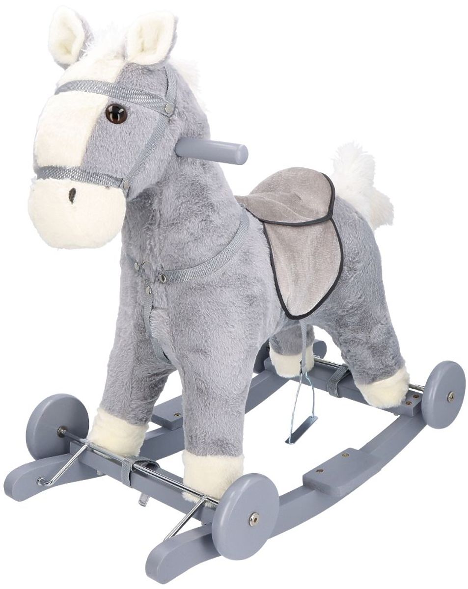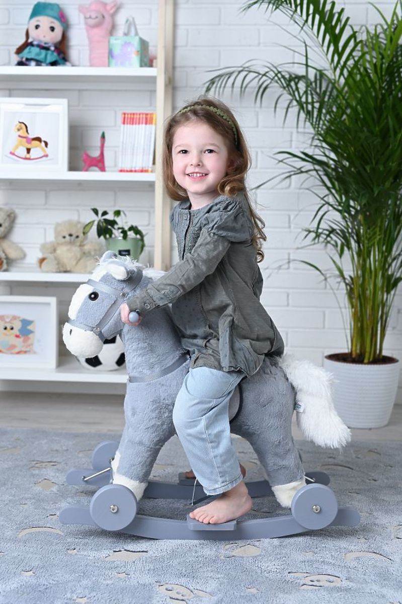 Šedý houpací kůň s kolečky je naše nová verze klasické hračky pro děti. Hlava koně je vyrobena z měkkého plyše, tělo koně spolu s nohama je vyrobeno z .. více