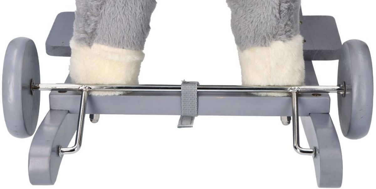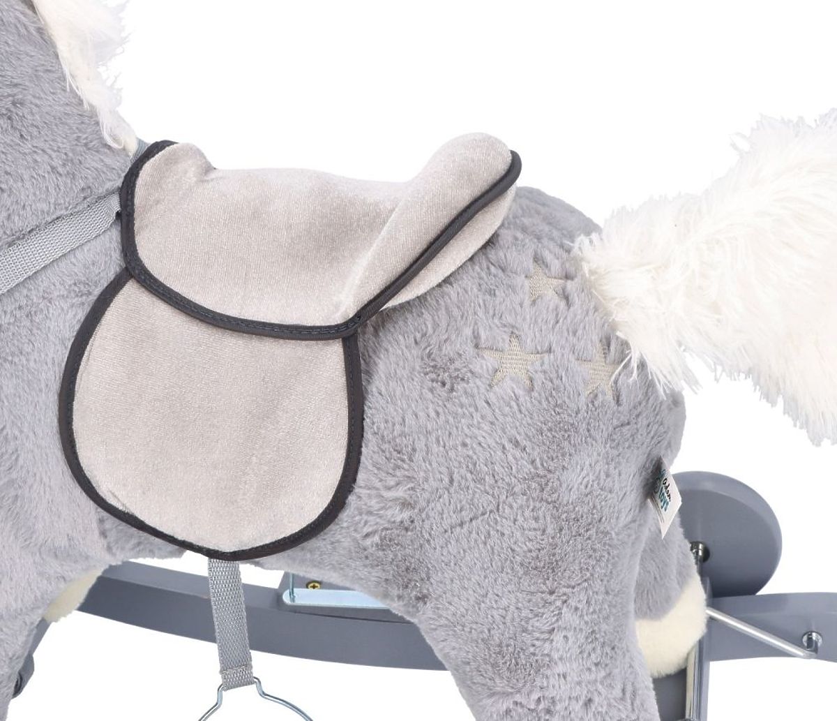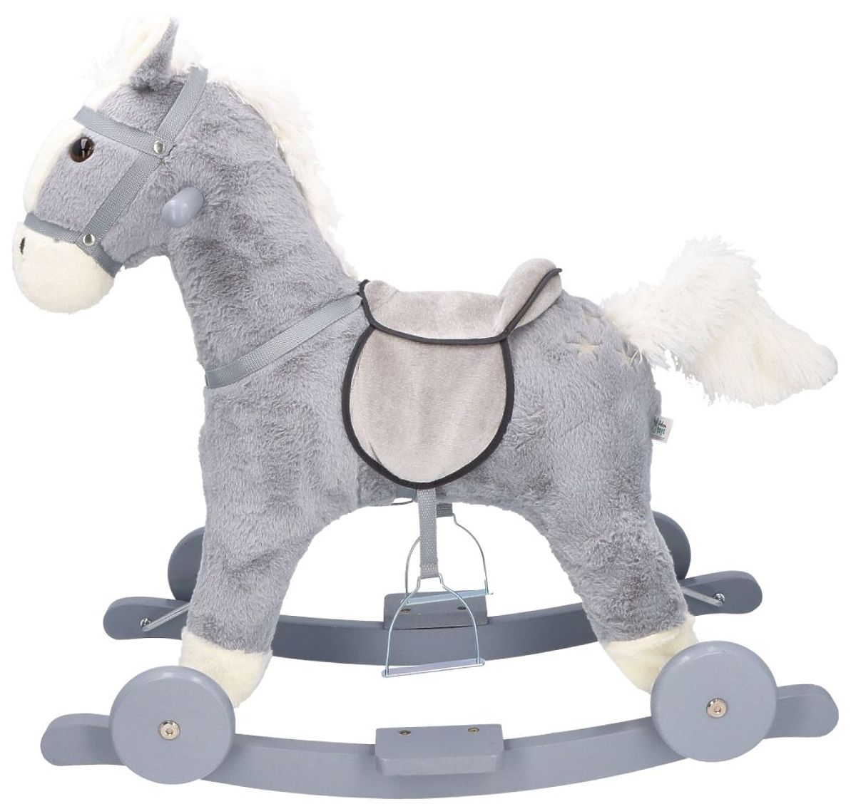 Šedý houpací kůň s kolečky je naše nová verze klasické hračky pro děti. Hlava koně je vyrobena z měkkého plyše, tělo koně spolu s nohama je vyrobeno z vyztuženého polystyrenu. Kůň bude nejlepším přítelem vašeho dítěte pro hry v domácím prostředí. Siwek byl navržen s ohledem na děti, které milují dobrodružství.