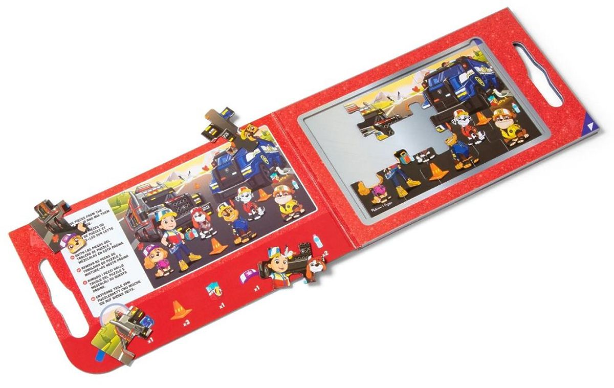 Máte doma malého fanouška Tlapkové Patroly? Pokud ano, máme pro něj něco skvělého: nádherné puzzle od známého výrobce hraček Melissa and Doug. Nejedná se o obyčejné puzzle v krabici, ale o magnetickou knížku, která obsahuje AŽ 2 obrázky k sestavení. Na jedné straně je vzor obrázku, pod ním najdeme seznam detailů, které je třeba při skládání puzzlí najít. Na druhé straně se samozřejmě nacházejí puzzle s vyznačeným místem pro skládání.