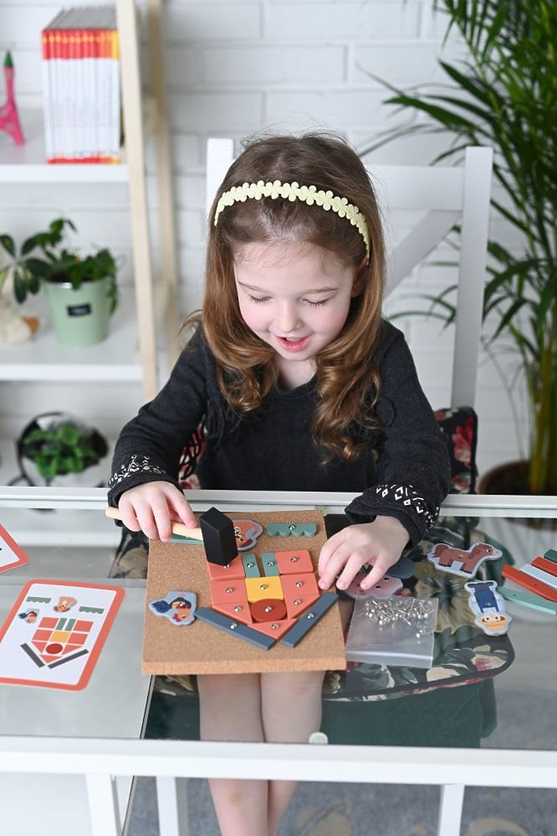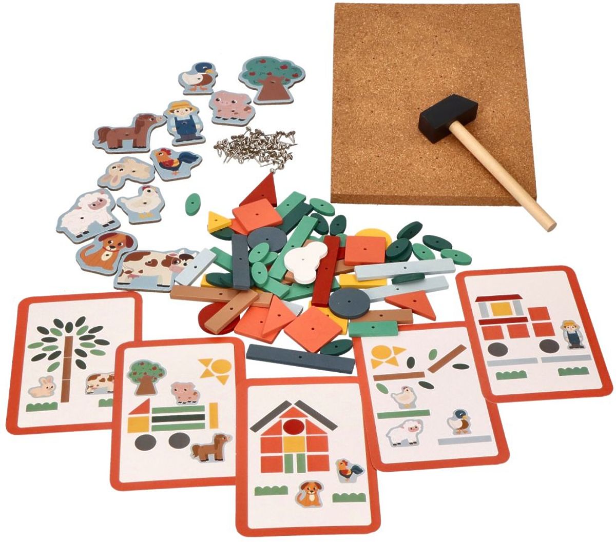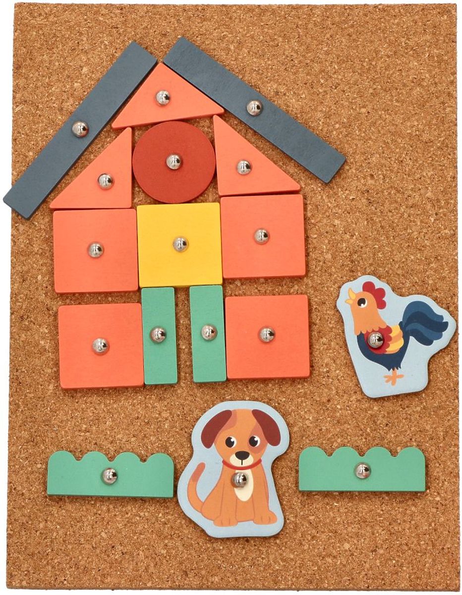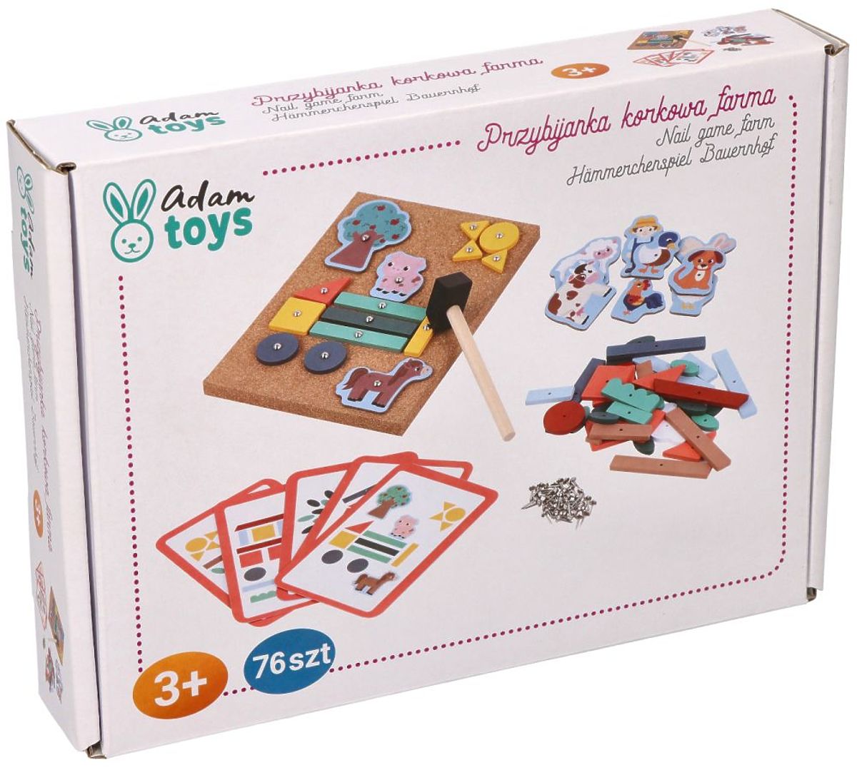 Další zajímavá nabídka od AdamToys ze série Farma je již k dispozici!!! Zajímavá skládačka, která procvičuje manuální dovednosti a obratnost prstů. Stačí vybrat tvary a zatloukat je do korkové desky tak, aby vznikl obrázek. V sadě najdete prvky pro sestavení farmy, ale ve skutečnosti je množství kombinací a vzorů obrovské.