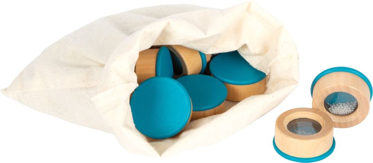 Cílem této smyslové hry je rozpoznávání, pojmenování a spojování do párů odpovídajících válců na základě poslechu jejich zvuků. 16 dřevěných krabiček je naplněno různými materiály, např.: dřevěnými kuličkami, kovovými kuličkami nebo plastovými korálky, které při zatřesení vydávají různé zvuky. Díky průhledným okénkům na spodní straně nádob můžete zkontrolovat jejich obsah. Hra je určena pro 1-4 hráče. Po skončení hry lze dřevěné krabičky uložit do praktického bavlněného sáčku.