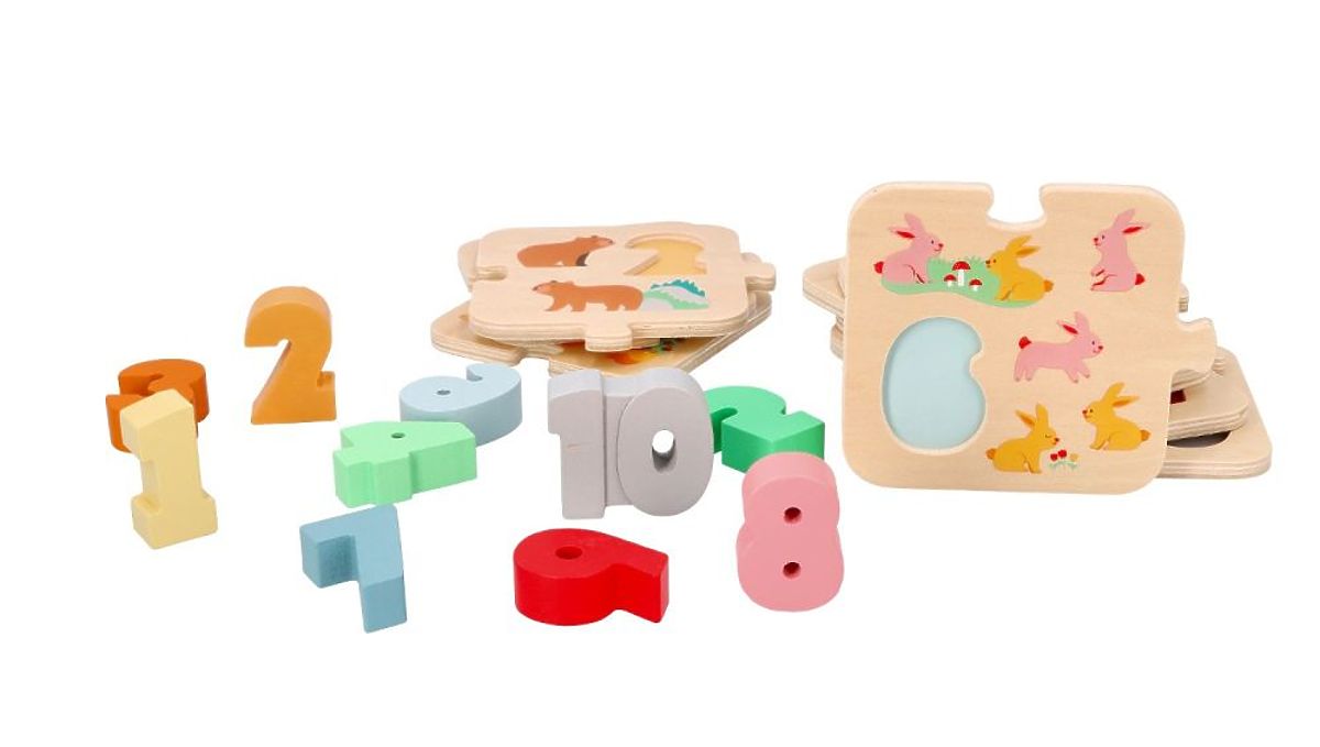Díky těmto třem možnostem hry dítě rozvíjí motorické schopnosti a koordinaci ruka-oko prostřednictvím přiřazování prvků. Vytváření řady čísel je naopak jejich poznávání, seznamování se s jejich vzhledem a možnost provádění jednoduchých úkolů. Ale to stále není vše. Na každém prvku navíc najdete sympatická zvířátka, jejichž počet odpovídá číslu, např. 4 jsou čtyři sympatické lišky a 1 je jedna žirafa atd.