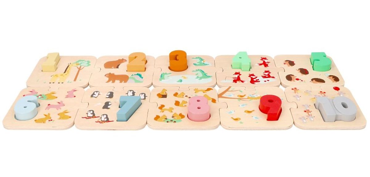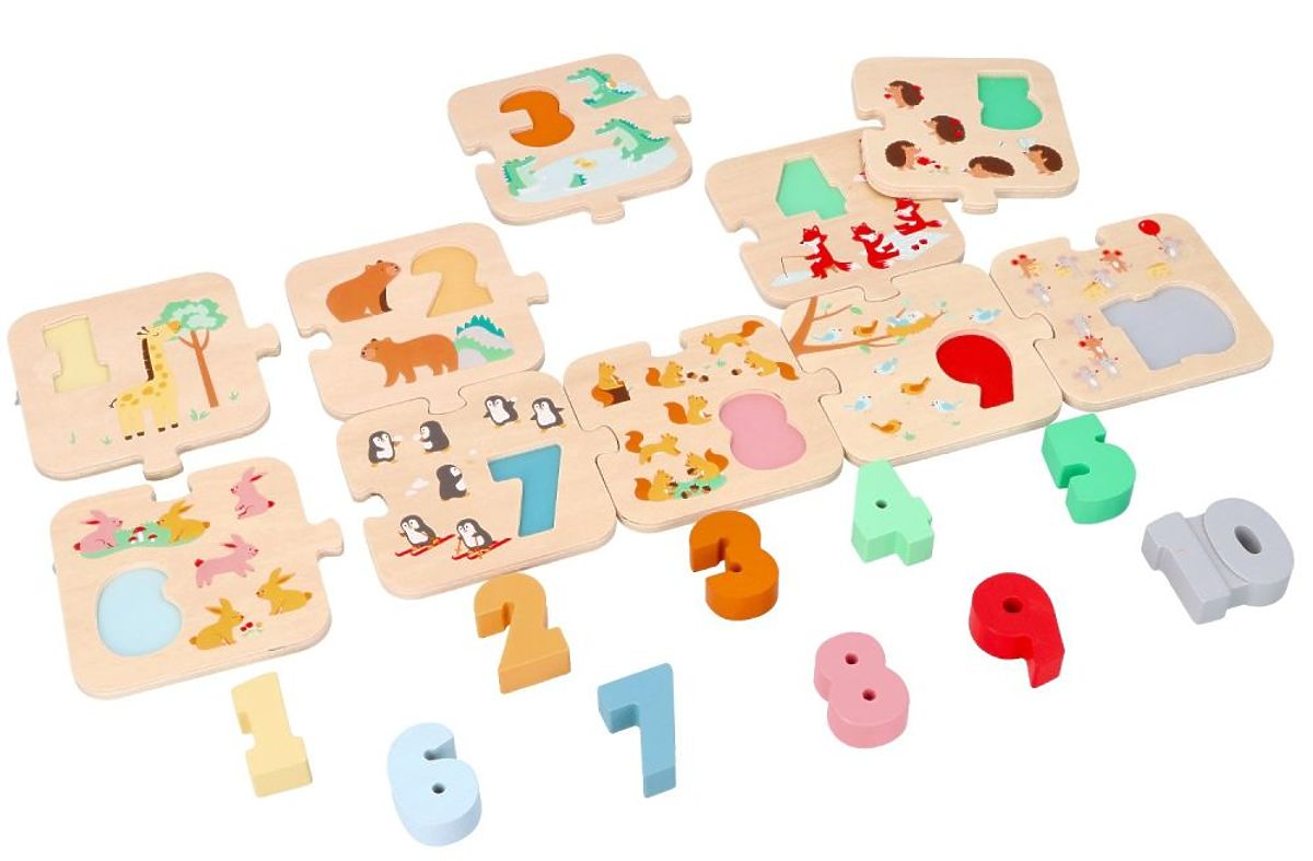 Rozměry: čísla 3-5 x 4,5 x 1,5 cm, puzzle 11,5 x 10 x 0,5 cm