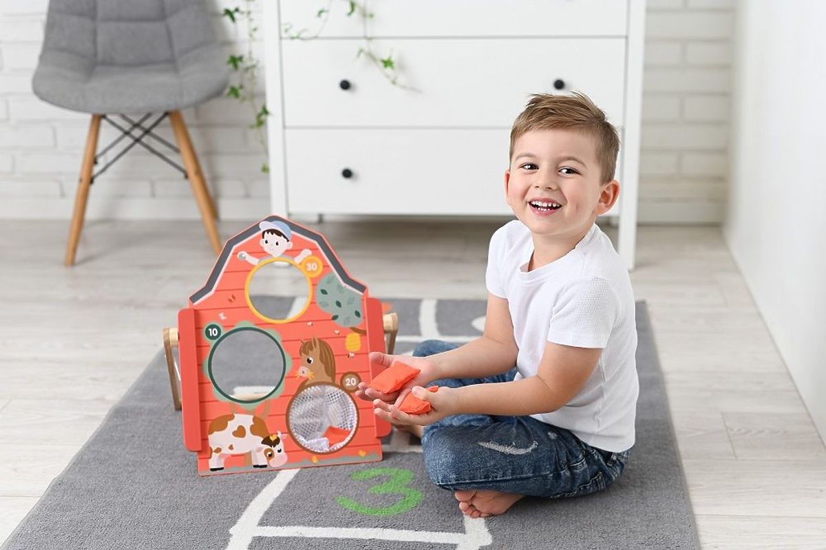Pohybové a obratnostní hry jsou skvělým řešením, jak povzbudit děti k pohybové aktivitě. Díky povzbuzování dětí ke hře a pohybu se zdravě rozvíjejí a pracují na své pohybové zdatnosti. Nespornou výhodou této hry je, že se hodí jak doma, tak venku. Deska vyrobená ze dřeva s motivem zvířat z farmy se jistě zalíbí dětem a povzbudí je k přesným hodům.