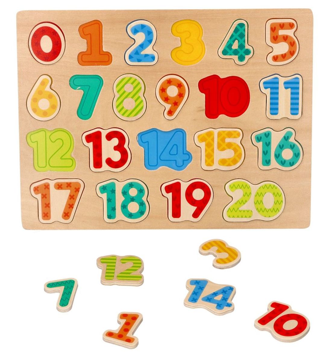 Každý dílek skládačky má navíc jiný vzor a barevnou škálu, což usnadňuje učení čísel a zpestřuje zábavu.