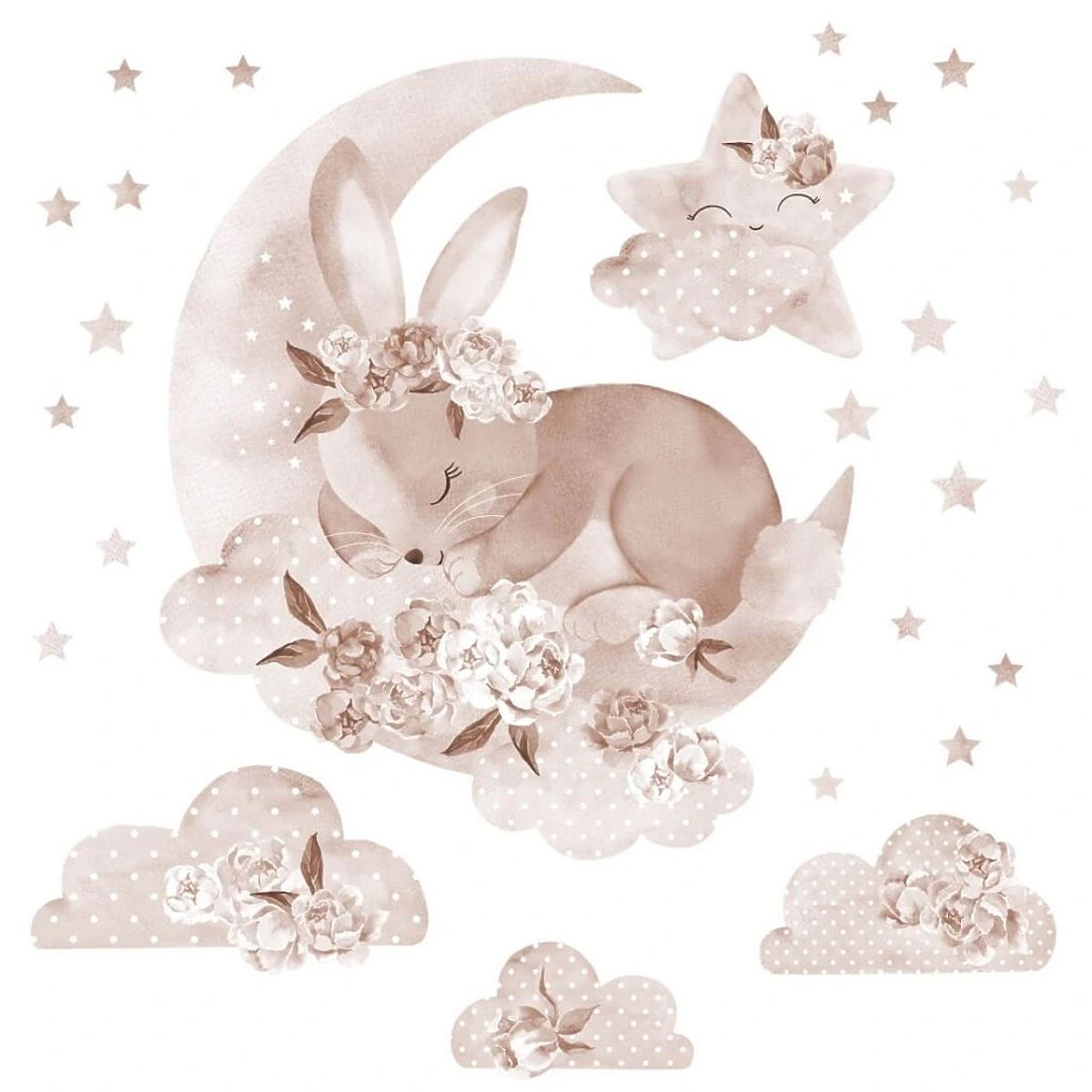 Králíček, hvězdičky a obláčky vytvoří harmonickou kompozici, která se dokonale hodí do každého interiéru. Snadná aplikace a možnost lepení na různé hladké povrchy z ní dělá praktický a krásný doplněk pro malé snílky.