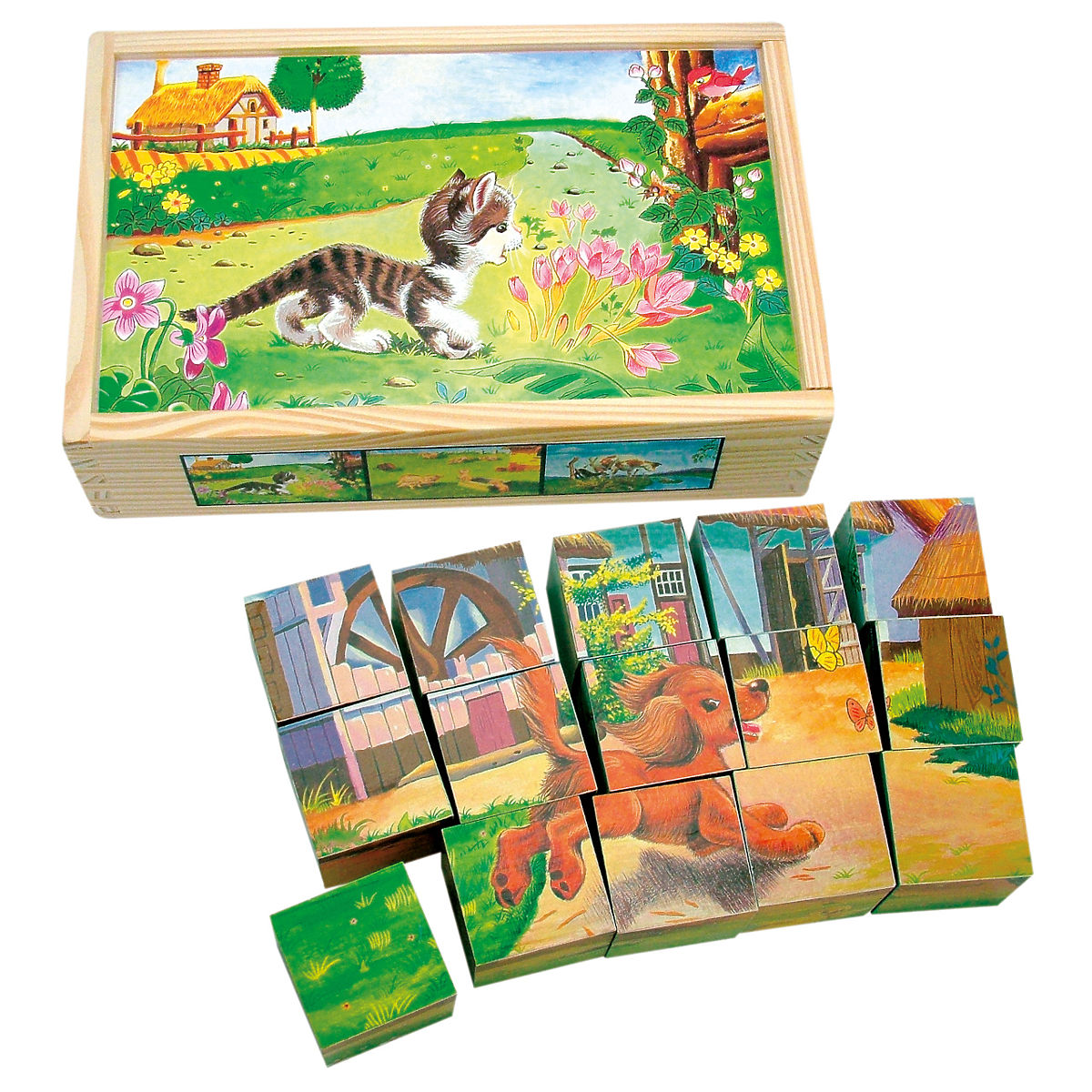 Není nad nejklasičtější z hraček, obrázkové kostky. Potištěné výjevy ze života na vesnici s domácími i hospodářskými zvířátky. Kostky jsou vyrobeny z masivního .. více