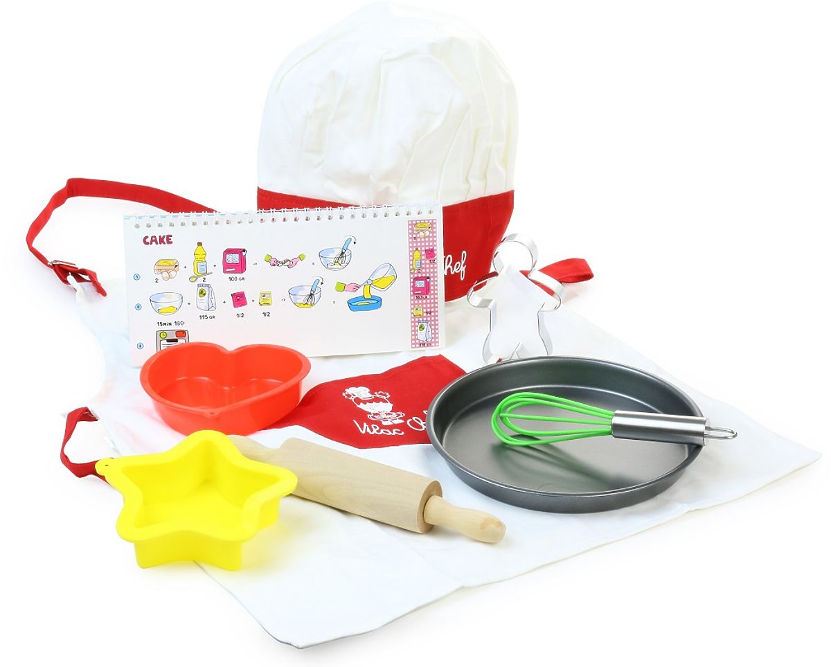 Je čas pozvat všechny kamarády na něco sladkého! Sledujte své děti při hře na cukráře, jak Vám s radostí a nadšením upečou zákusek, dort nebo cukroví. Sada obsahuje zástěru, čepici šéfkuchaře, vykrajovač sušenek, metličku, plech na pečení, váleček a knihu receptů. Vše je zabaleno v nápadité krabici ve tvaru čepice šéfkuchaře. Hra s touto sadou podporuje představivost a kreativitu při hraní na role a vyprávění příběhů. Rozvíjí socializaci, vzájemnou komunikaci a interakci mezi dětmi. Hlavní vlastnosti: rozvíjí jemnou motorikupodporuje socializaci, představivost a rozvíjí sebevědomípodporuje ve hře na role a vyprávění příběhů