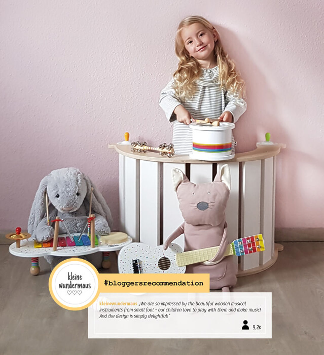 Tato puntíkovaná hudební sada je ideální pro vaše vystoupení. Šest různých nástrojů s individuálními zvuky. S chrastítky, rolničkami, xylofonem, tamburínou či trianglem si každý člen kapely najde ten svůj správný nástroj. Nejedná se o hudební nástroj, ale pouze o hračku. Hlavní vlastnosti: výjimečný design vyrobený v Německu zábava při hraníobsahuje šest různých nástrojů