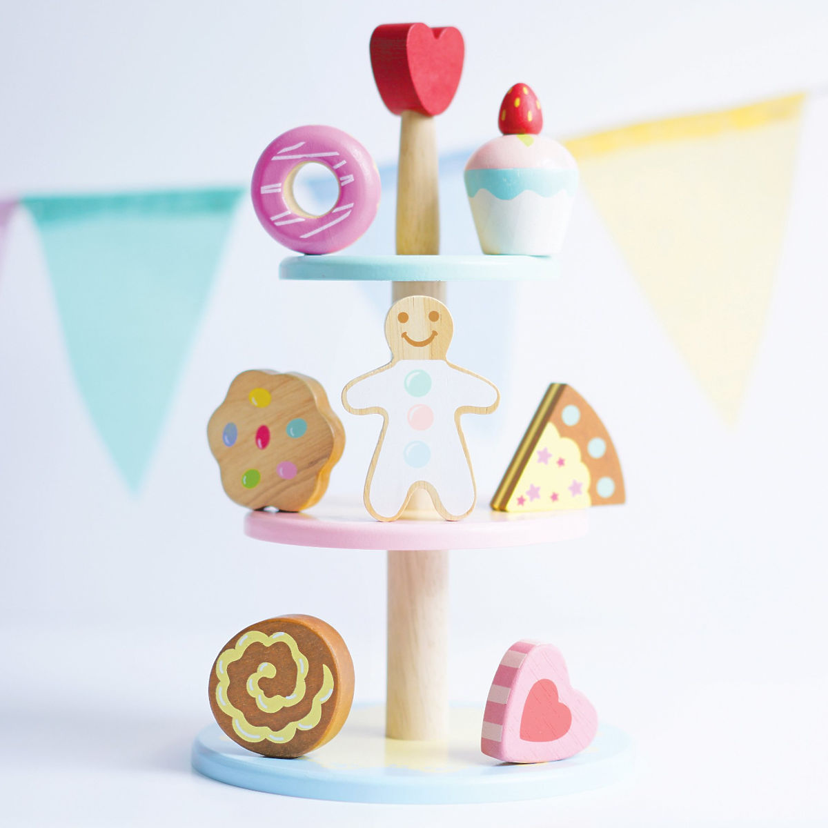 Dejte si do nosu s tímto trojpatrovým talířem plným zákusků. Mezi sedmi zákusky najdete perníček, donut, roládu, cupcake, sušenku… Talíře mají rozdílné barvy v pastelových odstínech. Všechny prvky hračky jsou vyrobeny z masivního dřeva, mají zaoblené hrany, které jsou bezpečné pro děti. Kvalitní a detailní výrobek děti inspiruje ke kreativní hře. Zákusky mohou nabídnou při představivém odpoledním čaji s plyšáky. Hračky s účelemVšechny hračky firmy Le Toy Van jsou vyrobeny s cílem – aby dlouho vydržely. Designovány s láskou zkušenými řemeslníky za použití etických praktik a udržitelných materiálů, které jsou laskavější k naší planetě. Hlavní vlastnosti: vyrobeno eticky z udržitelného dřevatestováno dle nejpřísnějších standardůmalováno netoxickými barvami na bázi vodyinspiruje k představivé hřerozvíjí kognitivní dovednosti Honeybake kolekce: Hračky v této kolekci jsou vhodné k objevování, pomohou dětem s rozvojem představivosti, sociálních a verbálních dovedností a kognitivních funkcí. Tradiční design s moderními detaily děti jistě bude bavit. Honeybake je kolekce Le Toy Van, která vyhrála nejvíce ocenění, a to za design, kvalitu, bezpečnost a také za vzdělávací a herní hodnotu.
