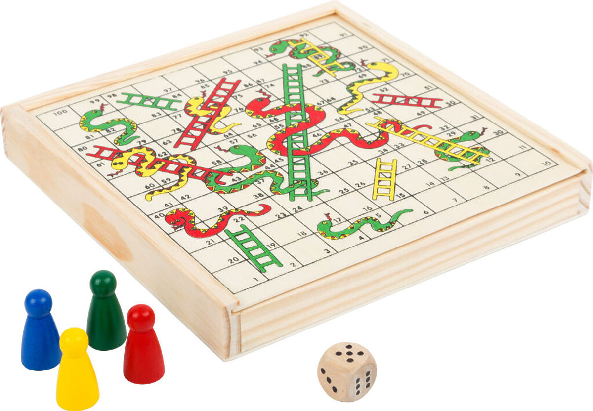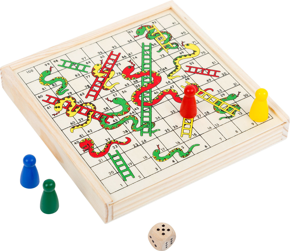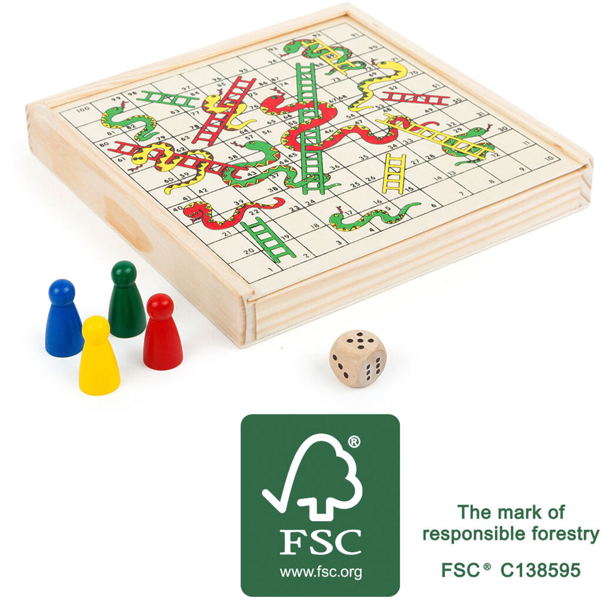 Čtyři hráči, kostka a hrací deska s hady a žebříky. Kdo se dostane z 1 na 100 nejrychleji? Tato kompaktní desková hra je vyrobená ze 100% FSC dřeva. Když stoupnete na políčko hada nebo žebříku stane se cesta do cíle delší nebo kratší. Tato desková hra je perfektní i na cesty. Dílky jsou bezpečně uloženy uvnitř krabice, která slouží jako hrací deska. Hlavní vlastnosti: 100% FSC dřevocestovní hratrénuje trpělivost Značka a certifikát FSC® (Forest Stewardship Council) zaručuje, že dřevo, ze kterého byl produkt vyroben, nebylo vytěženo nelegálně a pochází z lesů obhospodařovaných šetrným či přírodě blízkým způsobem, ve kterém jsou dodržovány přísné environmentální a sociální požadavky. Značka FSC® na výrobku znamená, že svým nákupem pomáháte chránit lesy a podporujete šetrné, odpovědné či přírodě blízké hospodaření, díky kterému jsou naše lesy stabilnější, zdravější, mají přirozenou druhovou skladbu a lépe odolávají negativním následkům klimatických změn.