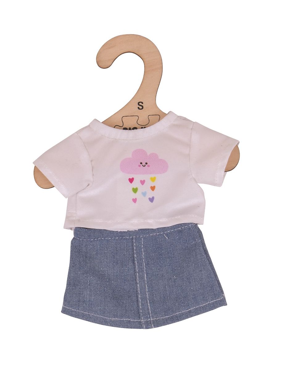 Babynabytek.cz » Hračky / Kočárky pro panenky a příslušenství / Bigjigs Toys Bílé tričko s riflovou sukní pro panenku 28cm
