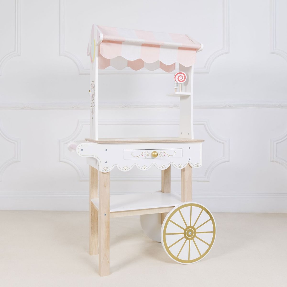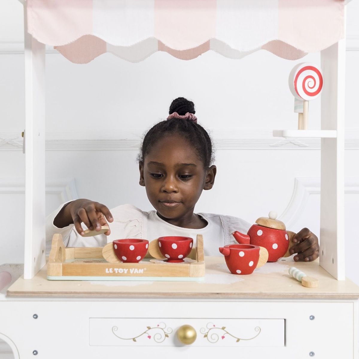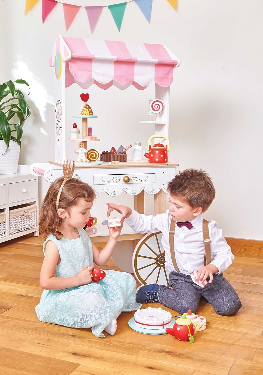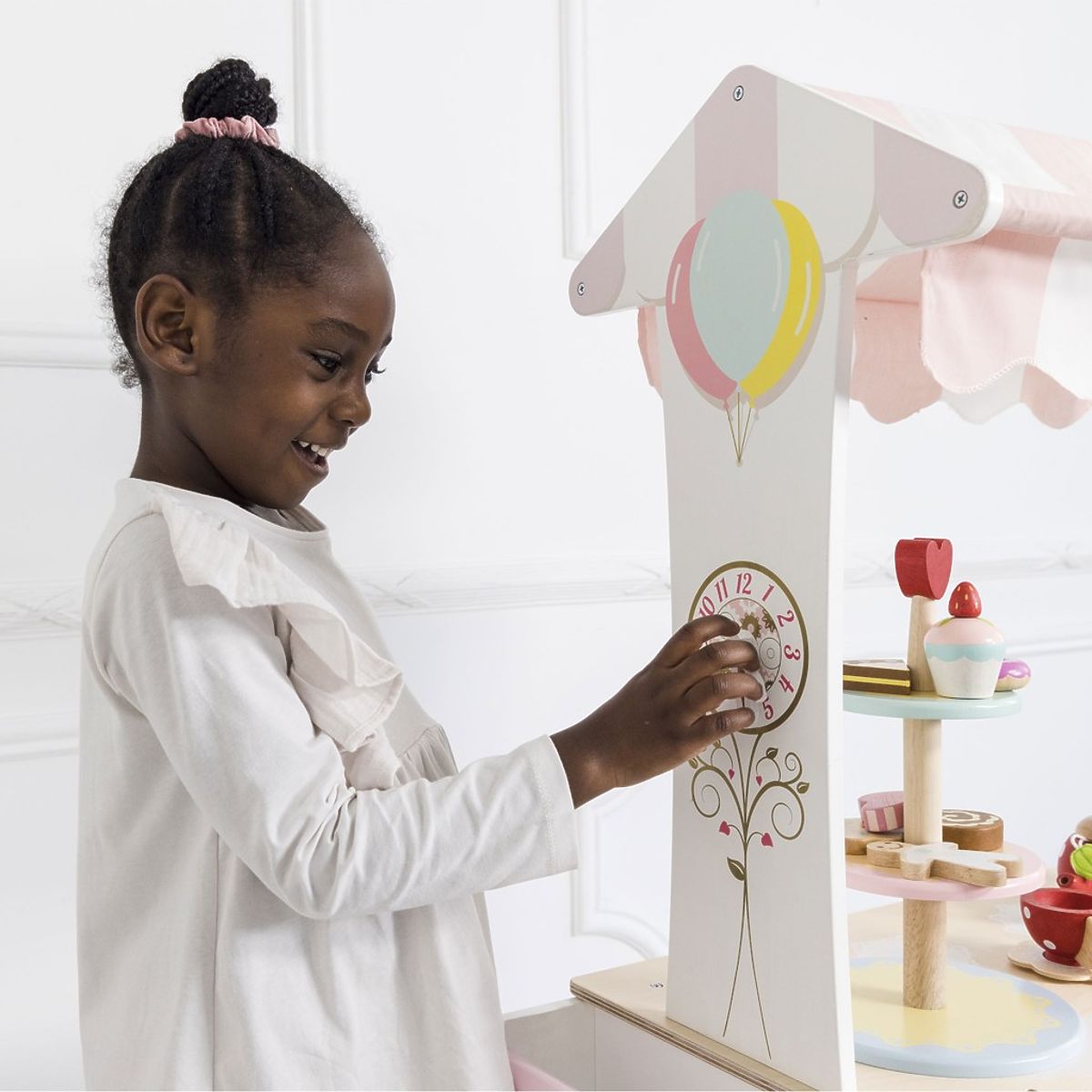 Je čas na čaj! Tento čajový vozík zaujme na první pohled. Má krásný vintage design, barevný baldachýn a zlatavé detaily. Vozík má tajný šuplík, do kterého si děti mohou uložit peníze za prodej dobrot. Nechybí dvě kolečka a madlo pro jednoduché přesouvání vozíku, také barevné ilustrace a nabídková tabulka na křídu. Jsou použity netoxické barvy na bázi vody. Vyrobeno z přírodního kaučukového dřeva. Hračky s účelemVšechny hračky firmy Le Toy Van jsou vyrobeny s cílem – aby dlouho vydržely. Designovány s láskou zkušenými řemeslníky za použití etických praktik a udržitelných materiálů, které jsou laskavější k naší planetě. Hlavní vlastnosti: vyrobeno eticky z udržitelného dřevatestováno dle nejpřísnějších standardůmalováno netoxickými barvami na bázi vodyinspiruje k představivé hřevhodné pro hru na rolehračka vyhrála ocenění Ocenění hračky:Good Toy Guide Recommended Honeybake kolekce: Hračky v této kolekci jsou vhodné k objevování, pomohou dětem s rozvojem představivosti, sociálních a verbálních dovedností a kognitivních funkcí. Tradiční design s moderními detaily děti jistě bude bavit. Honeybake je kolekce Le Toy Van, která vyhrála nejvíce ocenění, a to za design, kvalitu, bezpečnost a také za vzdělávací a herní hodnotu.