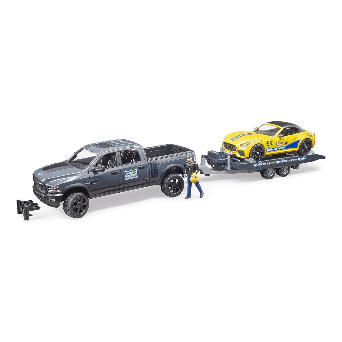 Babynabytek.cz » Hračky / Autíčka a dopravní prostředky / Bruder Terénní auto RAM se sportovním vozem a figurkou