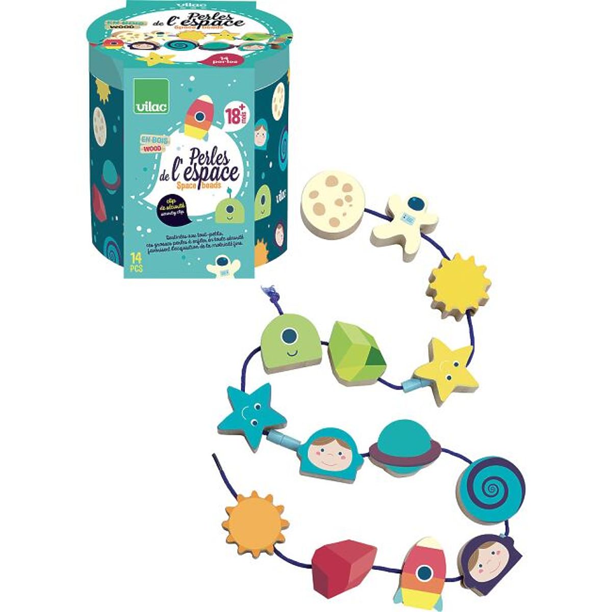 Krásná provlékačka v motivu vesmíru. V kompaktním balení najdete 14 ilustrovaných dřevěných korálků (např. astronaut, měsíc, slunce, raketa), které děti mohou navlékat na textilní šňůrku. Hračka pomáhá s rozvojem jemné motoriky. Vybaveno bezpečnostními sponami. Vhodné od 18 měsíců. Hlavní vlastnosti: 14 navlékacích tvarůvyrobeno ekologicky, šetrně k životnímu prostředí
