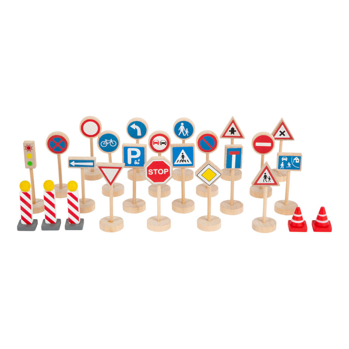 Jezděte bezpečně! Tyto mezinárodní dopravní značky jsou vyrobeny ze dřeva. Budou skvělým doplňkem pro dopravní koberec či vláčkodráhu Vašeho dítka. Hračka je .. více