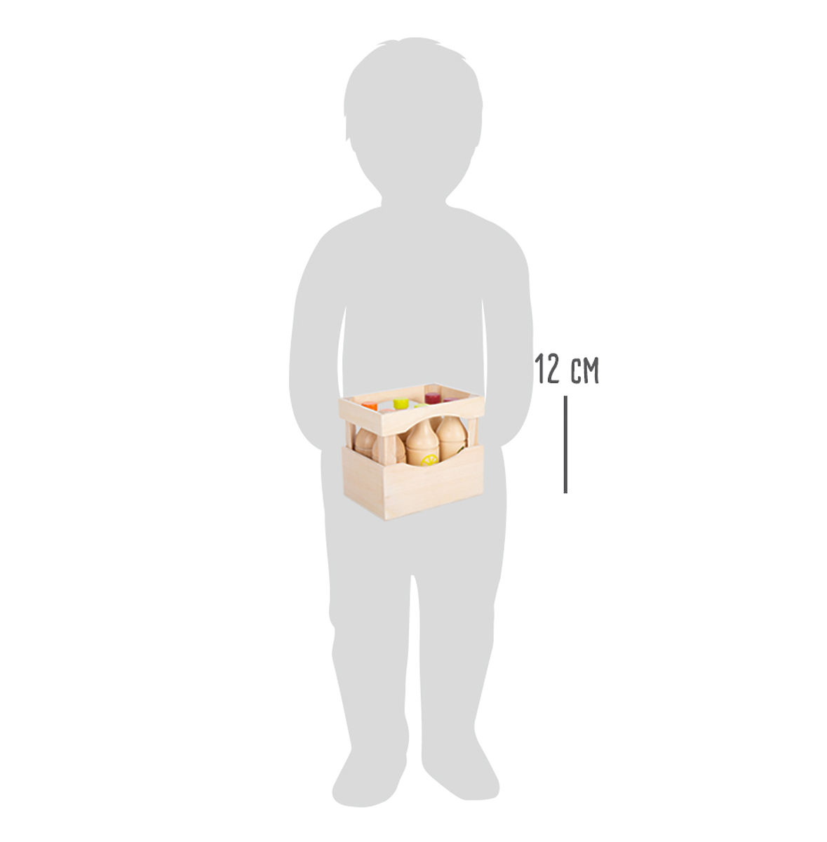 Z regálu do nákupního vozíku! Tato dřevěná přepravka obsahuje 6 dřevěných nápojových lahví. Najdete zde 2 lahve pomerančové, citronové a třešňové limonády. Jsou ideální do dětské kuchyňky či prodejního stánku. Díky jednoduchým ilustracím hračce porozumí i nejmenší děti. Pevné dřevo zaručuje dlouhotrvající zábavu. Hlavní vlastnosti: obsahuje 6 lahví nápojůzpracování z masivního dřeva zaručuje dlouhotrvající zábavudoplněk do dětské kuchyňky či prodejního stánku