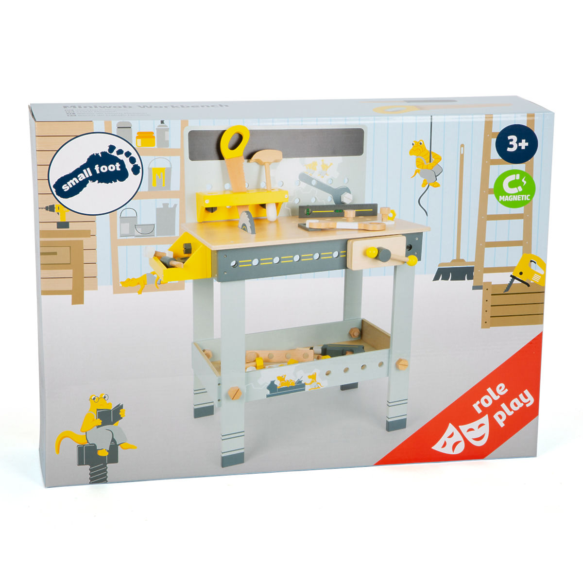 Řezání pilkou, otáčení šrouby, zabíjení kladivem! Společně s roztomilými Miniwoby si děti otestují svou zručnost a jemnou motoriku. Na ponku najdete vybavení jako 1 kotoučová pila, 1 elektrický šroubovák s 3 nástavci, 1 vodováha, 1 svěrák, 1 kladivo, 1 klíč, 1 pilka, 2 krabice s otvory pro šrouby, 6 stavebních lišet, 16 šroubů, 16 matek, 3 hřebíky. Děti si mohou svůj projekt načrtnout na tabuli, své nářadí uložit do malých boxů, které mohou zavěsit z boku ponku. Děti vám dokonce mohou pomoci se složením ponku! Minimalistické barvy, mnoho viditelného dřeva, prostě perfektní hračka pro malé kutily a kutilky. Hlavní vlastnosti Úložné boxy, které můžete našroubovat z boku ponkuOsm ks dřevěných nástrojů a různé doplňkyTabulka k načrtnutí projektuDěti mohou pomoci se složením ponkuPěkné dětské ilustrace Miniwob MiniwobSeznamte se s malými woby, nadšenými krokodýlími kutily! S jejich pomocí jde všechna práce jako po másle a žádná stavba není dost velká a promyšlená. Pestrá řada nástrojů a nářadí skýtá dokonalou zábavu pro všechny malé řemeslníky, jejich prostřednictvím mohou být kreativní a realizovat všechny své fantastické nápady. Jednotlivé sady je možno mezi sebou kombinovat a rozšiřovat s rostoucími dovednostmi dětí. Díky jednotícímu barevnému motivu a vyobrazením roztomilých Wobů je možno vytvořit jedinečný a ucelený dílenský koutek, který bude zároveň hodnotnou stavebnicí rozvíjející zručnost a představivost.