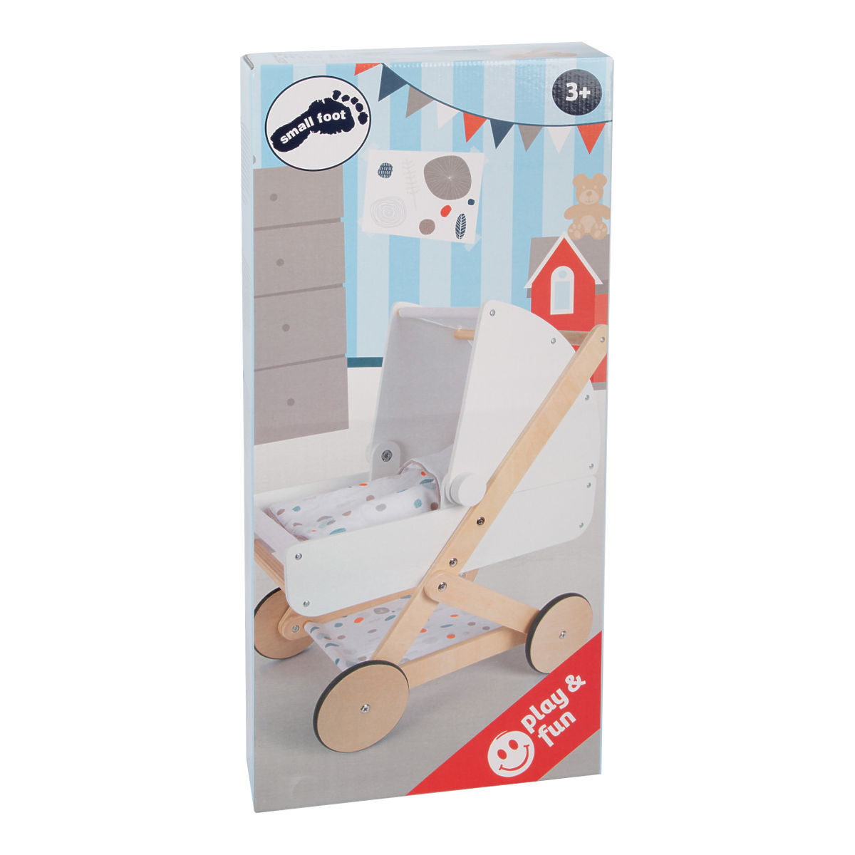 Pro panenky, plyšáky a jejich kamarády jen to nejlepší! Tento moderní kočárek pro panenky na vás udělá dojem svým jemným, lineárním skandinávským designem a také úložným prostorem pod lehátkem. Díky odklápěcí stříšce mohou panenky a plyšáci z kočárku koukat dopředu nebo dozadu. Oboustranné a genderově neutrální povlečení s peřinou nadměrné velikosti zajistí, že panenky a plyšáci do 46 cm budou v pohodlí. Kočárek má tichá pogumovaná kolečka. Moderní kočár s prvky z přírodního dřeva, s omyvatelným textilem jen čeká kdo se v něm sveze! Je velmi stabilní i při své nízké váze, hodí se do každého pokoje a to díky svému neutrálnímu designu. Hlavní vlastnosti: 2v1: Díky odklápěcí stříšce se mohou panenky a plyšáci dívat dopředu nebo dozaduPraktický úložný prostor pod lehátkemPogumovaná kolečka pro tichou a bezpečnou jízduStabilní konstrukce i při nízké vázeVhodné pro panenky a plyšáky do 46 cmZaoblené hrany a viditelně dřevěné prvkyOboustranné genderově neutrální povlečení, peřina nadměrné velikostiSkandinávský design, paleta jemných barev, prvky ze série „Little Button“ Little Button Řada atraktivního příslušenství pro panenky Little Button nabízí pestrou paletu výrobků, od kočárku přes jídelní židličku až po skříň. Zákazníky snadno zaujmou jednotným funkčním a decentním designem využívajícím přímé linie a střídmé neutrální barvy. Díky tomu spolu mohou vytvořit ucelené harmonické soupravy, které vkusně doplní moderní interiér. Důmyslná konstrukce a kvalitní zpracování pomáhají zajistit vysokou stabilitu, bezpečnost a dlouhou životnost. Založte s jejich pomocí stylový koutek pro panenky, kde mohou Vaše děti rozvíjet svou fantazii a pečovatelské dovednosti.