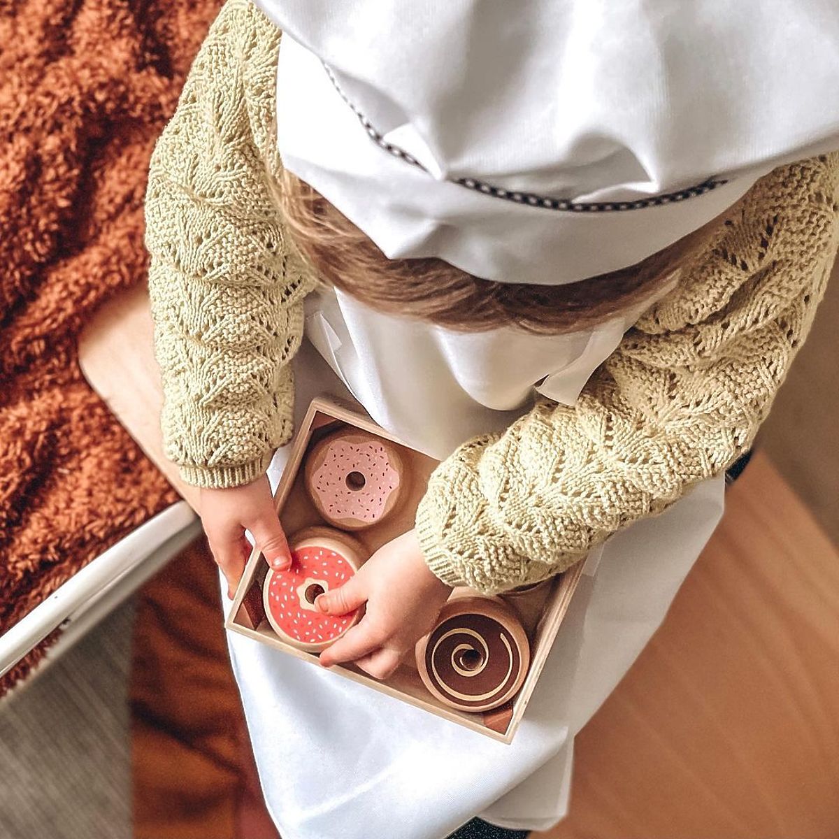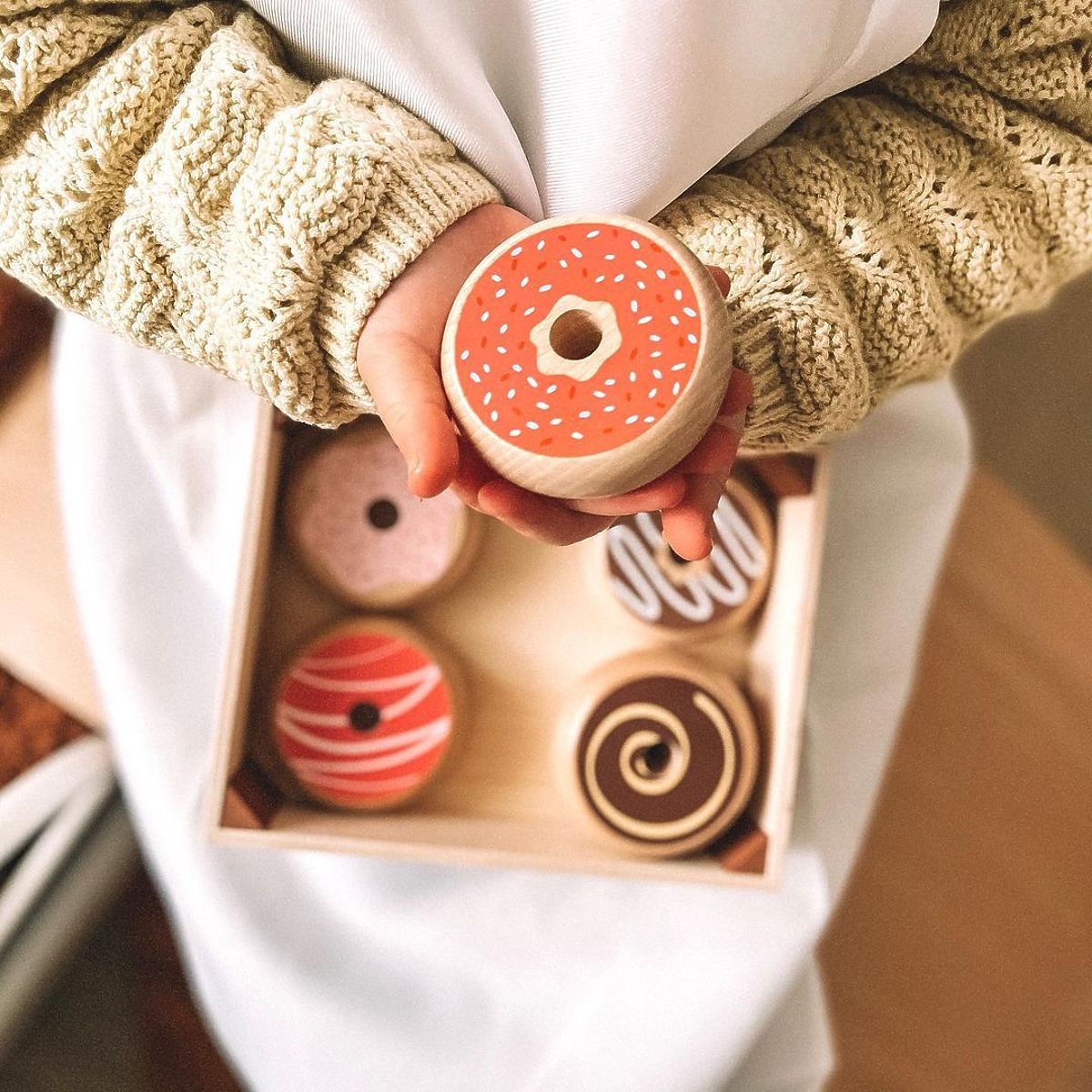 Dřevěný box s donuty, které vypadají realisticky a velmi chutně. Můžete je sníst sami nebo se podělit s ostatními! Ideální hračka, která děti seznámí s možností volby a se sdílením. Perfektní hračka pro čajové dýchánky nebo pikniky. Podporuje děti v kreativitě a hraní na role. Vyrobeno z kvalitních materiálů ze zodpovědných zdrojů. Splňuje evropské bezpečnostní standardy. Hlavní vlastnosti: krabička (bez víka) a 6 donutůodolné provedenívyrobeno s ohledy na udržitelnost