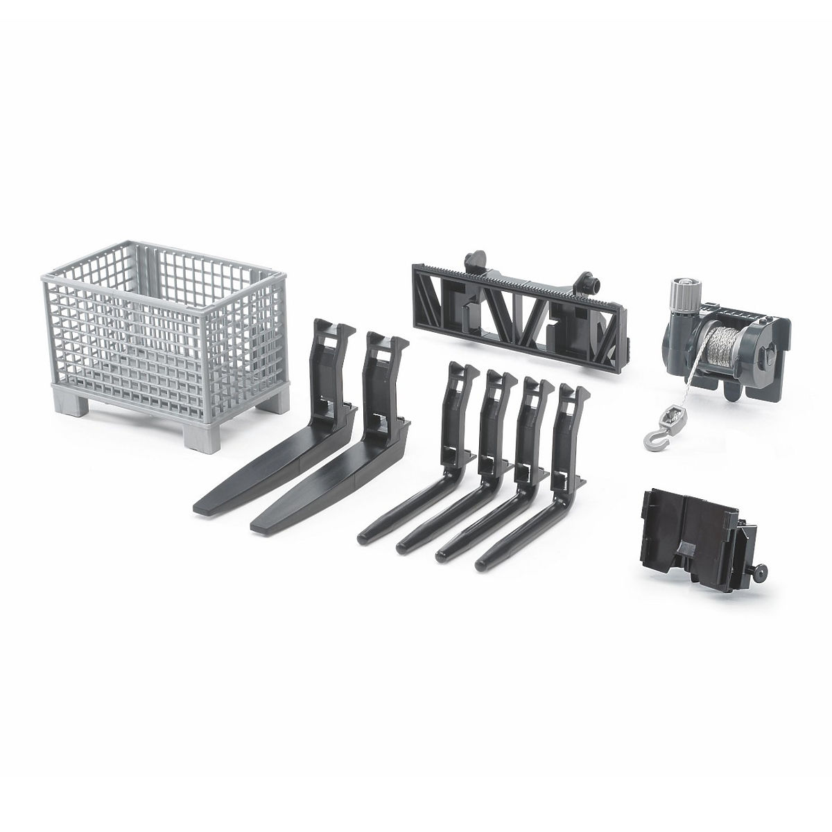 Sada, která Vám umožní přestavět nakladače na manipulátory s paletami a paletovými koši, nebo je možné použít naviják pro téměř neomezenou prostupnost terénem. Sada byla vyrobena v měřítku 1:16 ke skutečným komponentům jako věrná plastová kopie. Jde o velice kvalitní zpracování německé firmy BRUDER do nejmenších detailů, vyrobeno v Německu z vysoce kvalitního ABS plastu, pružného plastu s lesklým povrchem, precizně bez jakýchkoli otřepů či přetoků. Kompatibilní s traktory Bruder: 2042, 2052, 2062, 2112, 3011, 3021, 3031, 3041, 3051, 3091, 3096 Kompatibilní se stroji Bruder: 2125, 2129, 2136, 2140, 2141, 2431, 2441, 3580