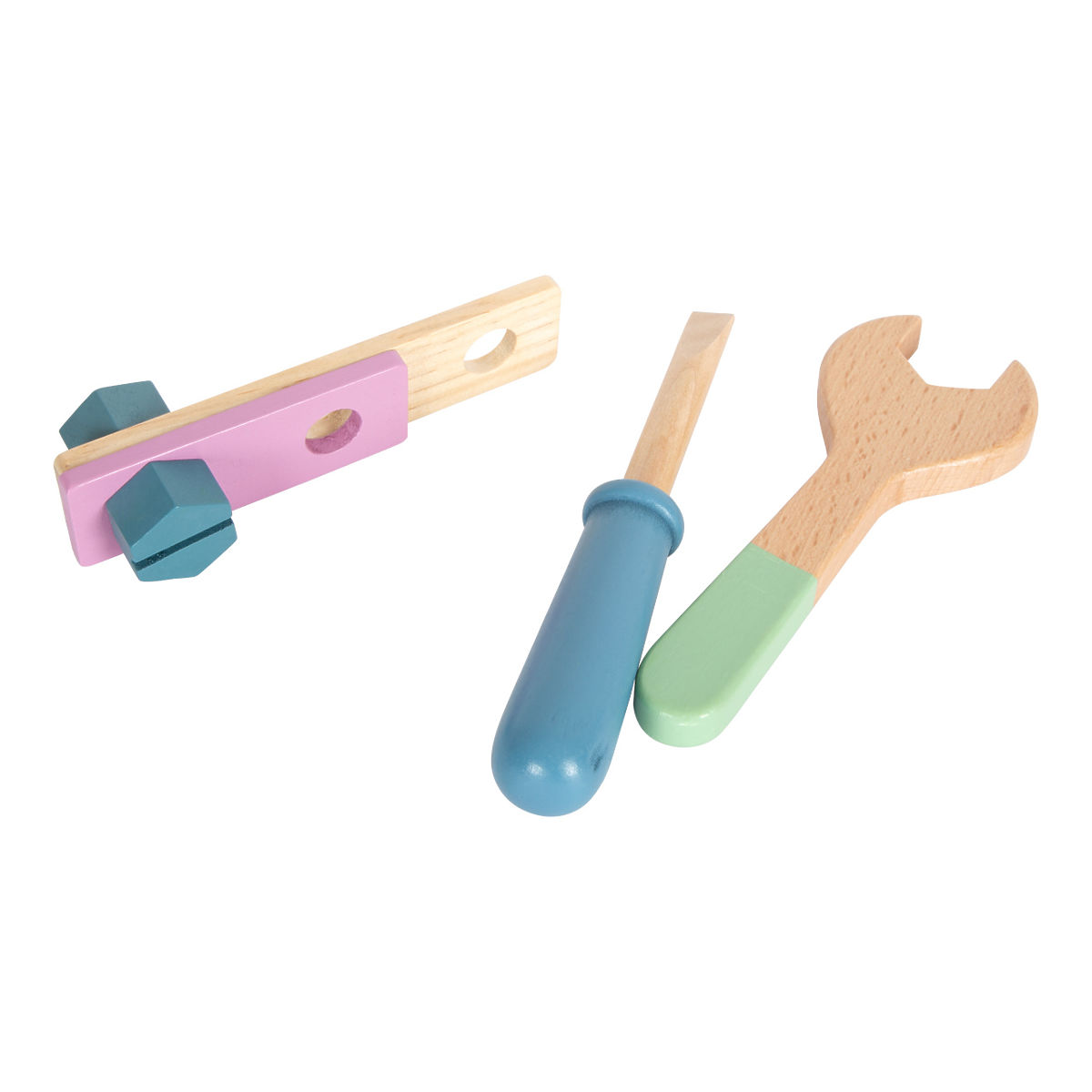 Praktická sada nářadí v bedýnce s rukojetí. Hračka 2v1, když bedýnku otočíte, můžete ji použít jako pracovní desku! Díky této vychytávce dětem hračka nabídne nekonečné možnosti hraní, mohou si hrát i na cestách. Neokázalé skandinávské barevné schéma s jasně viditelným dřevem. V balení najdete 5 ks nářadí – kladivo, klíč, šroubovák, hasák, svěrák. Rukojeť můžete odstranit za pomocí nářadí, nářadí můžete do bedýnky jednoduše uložit díky jejím otvorům. Genderově neutrální design v jemných pastelových barvách. Skvěle se hodí k ostatním produktům z řady Nordic. Hlavní vlastnosti: dřevěná motorická hračkagenderově neutrální designproduktová řada Nordic