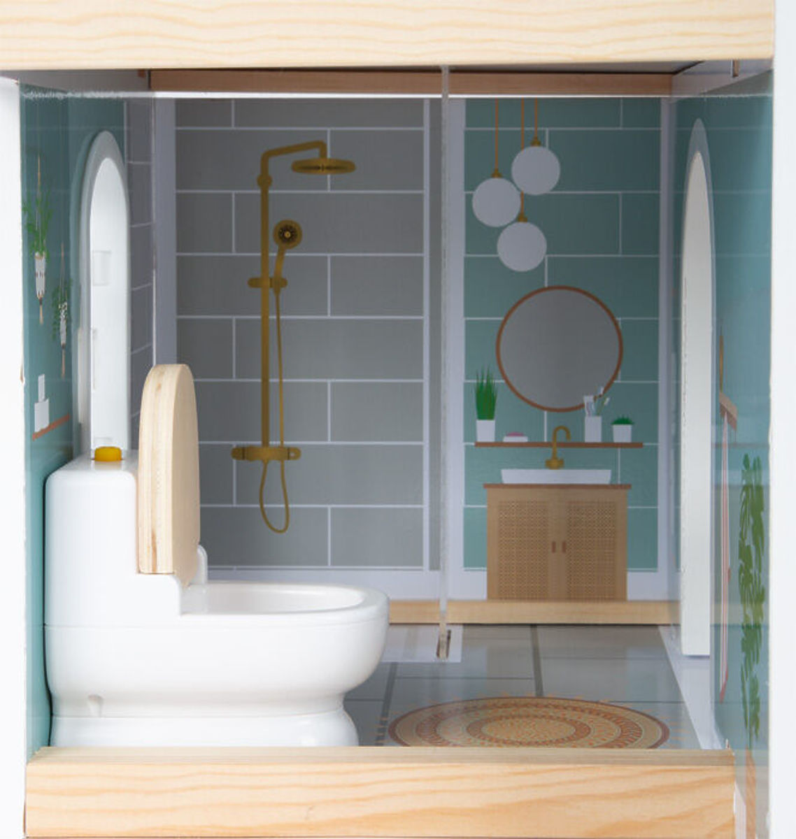 Tento moderní domeček pro panenky má otevřenou přední stranu s krásnými uměleckými detaily a moderním interiérem. Kombinovaná kuchyně s jídelním koutem, .. více