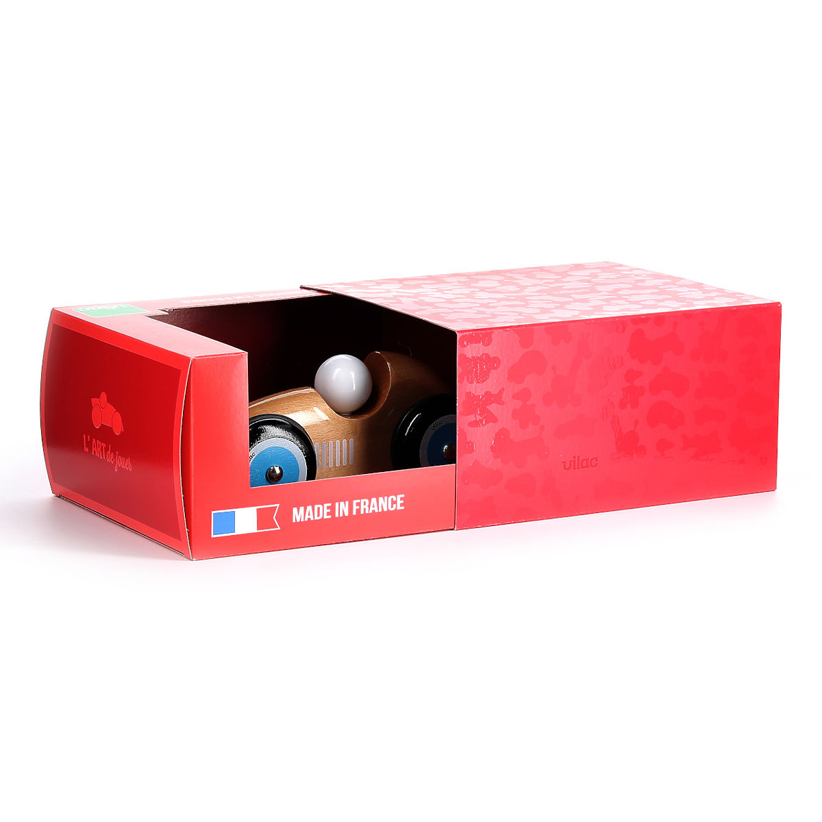 Velké dřevěné autíčko jedinečných tvarů a barev, které v každém, malém i velkém, řidiči vzbudí nadšení a chuť závodit. Svým provedením snadno osloví dospělé sběratele a i díky rozměrům se hravě stane nepřehlédnutelným doplňkem interiéru. Součásti autíčka jsou z masivního dřeva lakovaného tradičním procesem ponořování do lázní s barvou. Robustní kola se vyznačují hladkým chodem a jsou opatřena gumovými kroužky, díky kterým hračka při pohybu nepůsobí zbytečný hluk. Vyrobeno ve Francii, dodáváno v prémiové krabičce. Hlavní vlastnosti: jedinečný design a zpracovánítichý a kultivovaný chodvyrobeno ve Francii