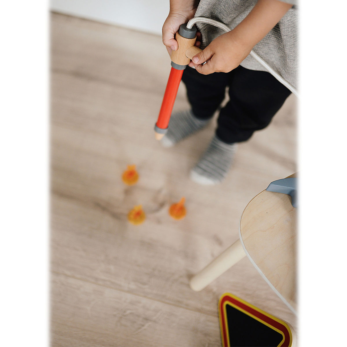 S tímto realistickým hasičským batohem v nouzových barvách s nastavitelnými ramenními popruhy jsou mladí hasiči vždy na místě, když je potřeba. Dvojitý zip zajišťuje široké otevření batohu. Batoh nabízí mnoho úložného prostoru a rychlý přístup k vybavení z robustního dřeva. Dvě další zacvakávací přezky na batohu umožňují připevnění dalšího příslušenství. Top je požární stříkačka! Praktický hasičský batoh s kompletní sadou hasičského vybavení a veškerým důležitým náčiním umožňuje dětem zahrát si vzrušující hasičský zásah. Hlavní vlastnosti: skvěle se hodí k motorové pile (12362)nastavitelné ramenní popruhy zacvakávací pásek pro zajištění příslušenství