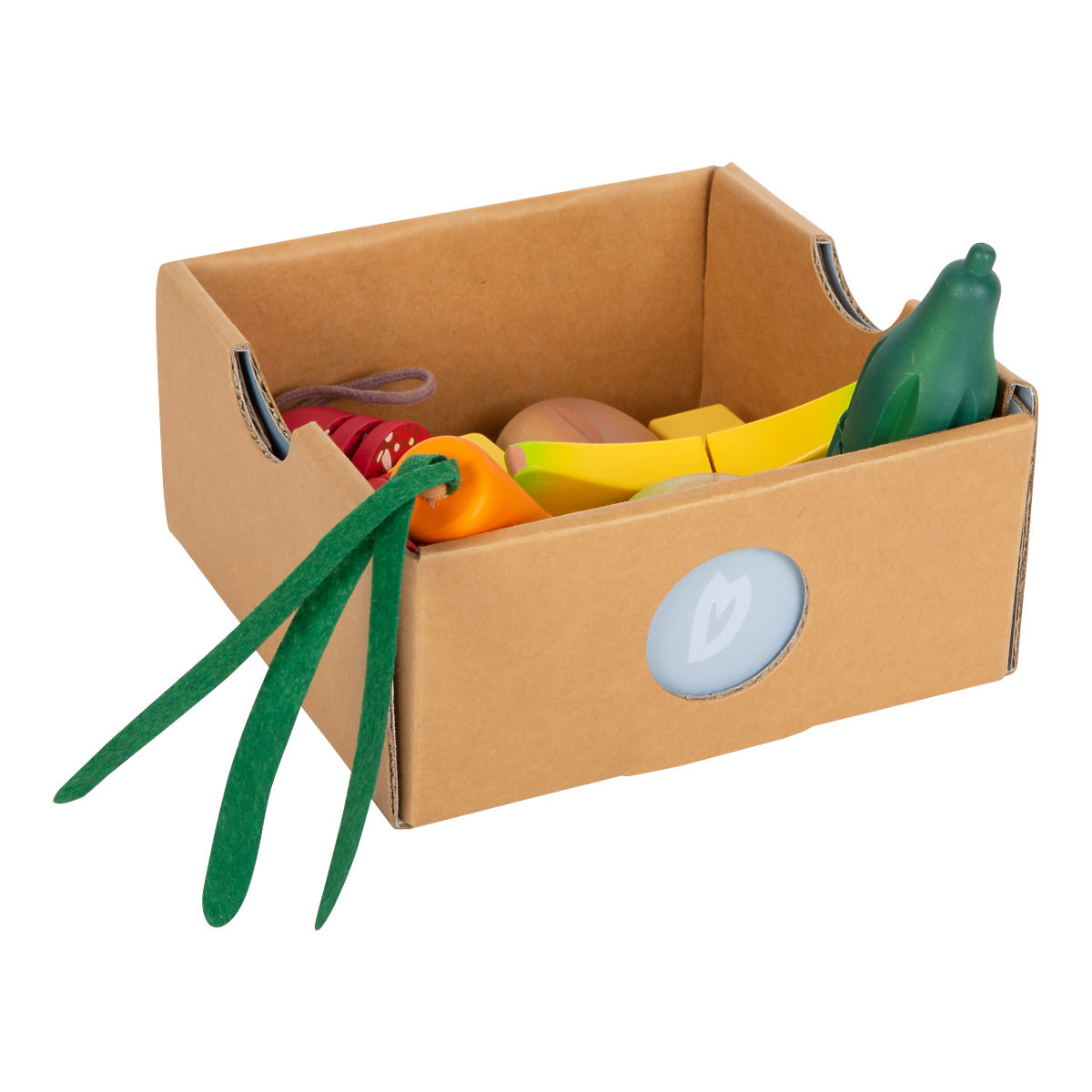 S touto sadou krájecích potravin z robustního dřeva si mohou děti hrát na šéfkuchaře! Skládá se z běžných potravin, které děti bez problému poznají. V balení prkénko na krájení, dřevěný nůž, znovupoužitelný obal, který lze použít k úschově hračky. Na jednu stranu prkénka lze psát křídou, zapište si nákupní seznam nebo recept.Je opravdu důležité naučit se správnou techniku krájení, s touto hračkou to půjde jako po másle. Rajče, okurka, mrkev, jablko, banán, kus sýra, salám, máslo a pečivo – v této sadě je vše! Přirozeně vypadající a detailní potraviny drží dohromady pomocí suchého zipu. Díky udržitelnému obalu se děti naučí něco nového o ekologii. Krájecí prkénko lze díky oka pověsit. Hlavní vlastnosti: krájecí potraviny z robustního dřevadílky na suchý zipobsáhlá sada s prkénkem, nožem, rajčetem, okurkou, mrkví, jablkem, banánem, kouskem sýra, salámem, pečivemzabaleno v znovupoužitelném obalu, děti se při hře naučí něco nového o ekologiina jednu stranu prkénka lze psát křídou