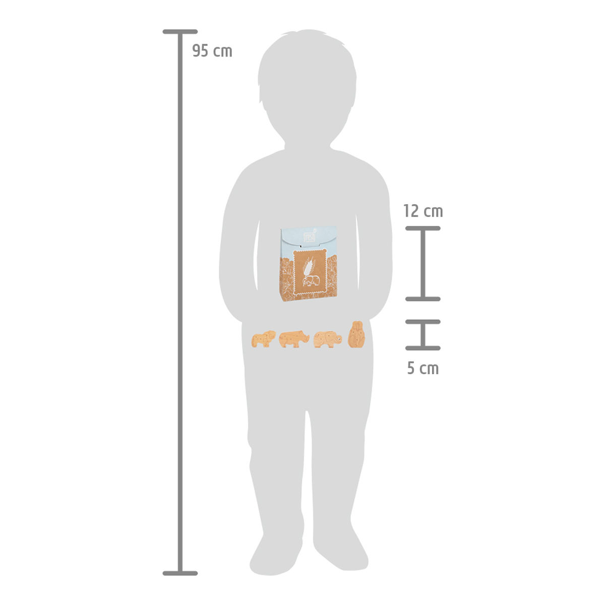Zvířátka savany jako sušenky! Těchto 8 robustních zvířecích sušenek je vyrobených ze dřeva. Obohatí každý dětský prodejní stánek nebo kuchyňku. Jsou zabaleny v pevném obalu z přírodního kartonu. Obsah balení je vyobrazen na zadní straně obalu. Přírodní a realistický vzhled z těchto sušenek udělá oblíbence dětí. V balení 2 lvi, 2 opice, 2 nosorožci, 2 sloni. Hračka dětem nabídne dlouhotrvající zábavu hlavně v kombinaci s ostatními produkty z řady „Fresh“. Hlavní vlastnosti: osm robustních sušenekideální doplněk dětských prodejních stánků a kuchynírealistické sušenky ve tvaru zvířátekzabaleny v neošetřeném kartonukrabičku lze jednoduše otevřít i znovu zavřítkompatibilní s dalšími produkty z řady „Fresh“