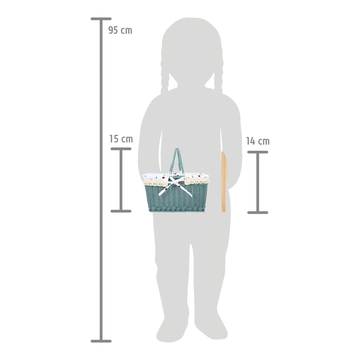 Můžete vyrazit na piknik! Tento kvalitní piknikový koš se složitelnými rukojetěmi a piknikovou dekou bude skvělým doplňkem pro vaše výlety na venkov nebo na zahradu. Košík je upleten z kvalitního proutí, je vybaven pro 2 osoby. Nádobí a jídlo je vyrobeno z pevného dřeva. Pomeranč a croissant drží dohromady díky suchému zipu. Vnitřní obložení košíku lze vyjmout a lehce vyčistit.Tato hračka má stejné barevné provedení jako kuchyňka „Tasty“ a další produkty z této série. Děti si s ní užijí představivou hru doma i venku. Některé z jídel lze „krájet“ za pomoci dřevěného nože. Hlavní vlastnosti: moderní a robustní proutěný piknikový koš„jídlo“ pro dvě osobyrukojeti lze složitv balení deka ve stejném motivuvnitřní obložení lze jednoduše vyjmouthračka pro hraní na role do kuchyněk nebo na piknikpomáhá s rozvojem jemné motoriky, sociálních a každodenních dovednostímoderní design v kombinaci s bílou, přírodním dřevem a trendy barvamikompatibilní s dalšími produkty z řady „Tasty“