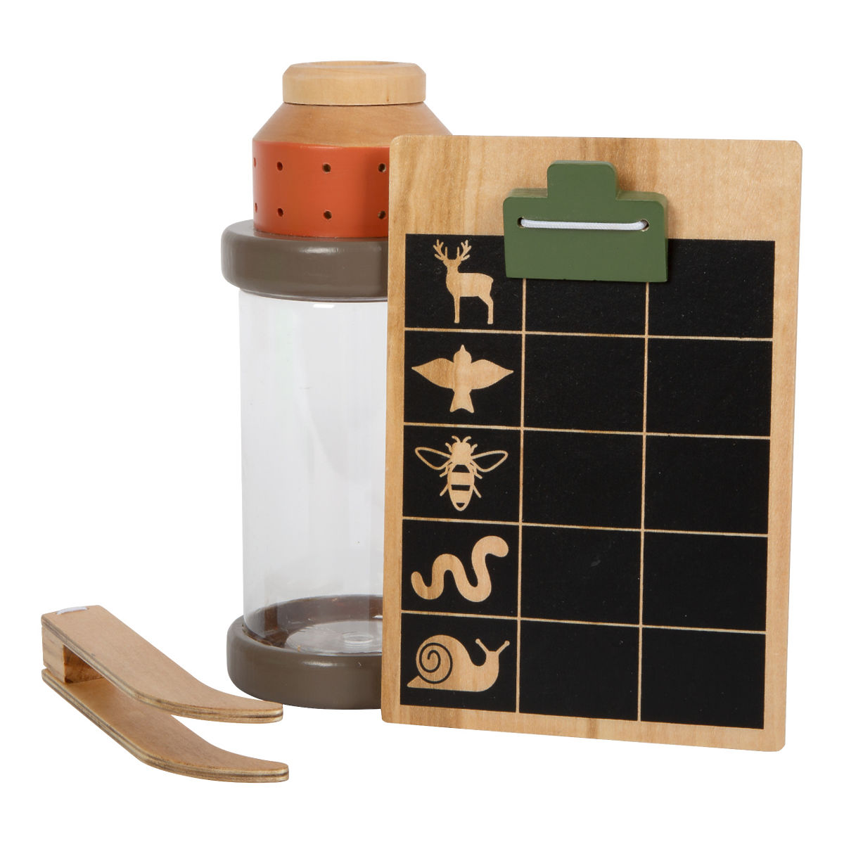 Vydejte se do přírody! S touto sadou dobře vybavíte mladé průzkumníky a průzkumnice. Praktická pinzeta z robustního dřeva, deska s klipem a tabulkou na křídu, .. více