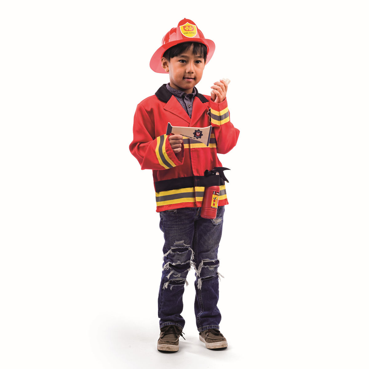 Malí hrdinové mohou přijít na pomoc v tomto dětském kostýmu hasiče. Ať už jde o hašení požárů, nebo záchranu koček ze stromů, možnosti předstírané hry jsou nekonečné. Součástí této dětské sady je jasně červená hasičská bunda s pruhovanými rukávy a odznakem, dřevěný hasicí přístroj, vysílačka a megafon. Zapínání je na suchý zip pro snadné oblékání a svlékání. Helma je nastavitelná, obvod hlavy 49-55 cm. Kostým byl testován podle nejnovějších předpisů EN71. Hlavní vlastnosti: včetně příslušenstvínastavitelná helmavhodné pro děti od 3 do 5 letnápadité a detailní zpracování