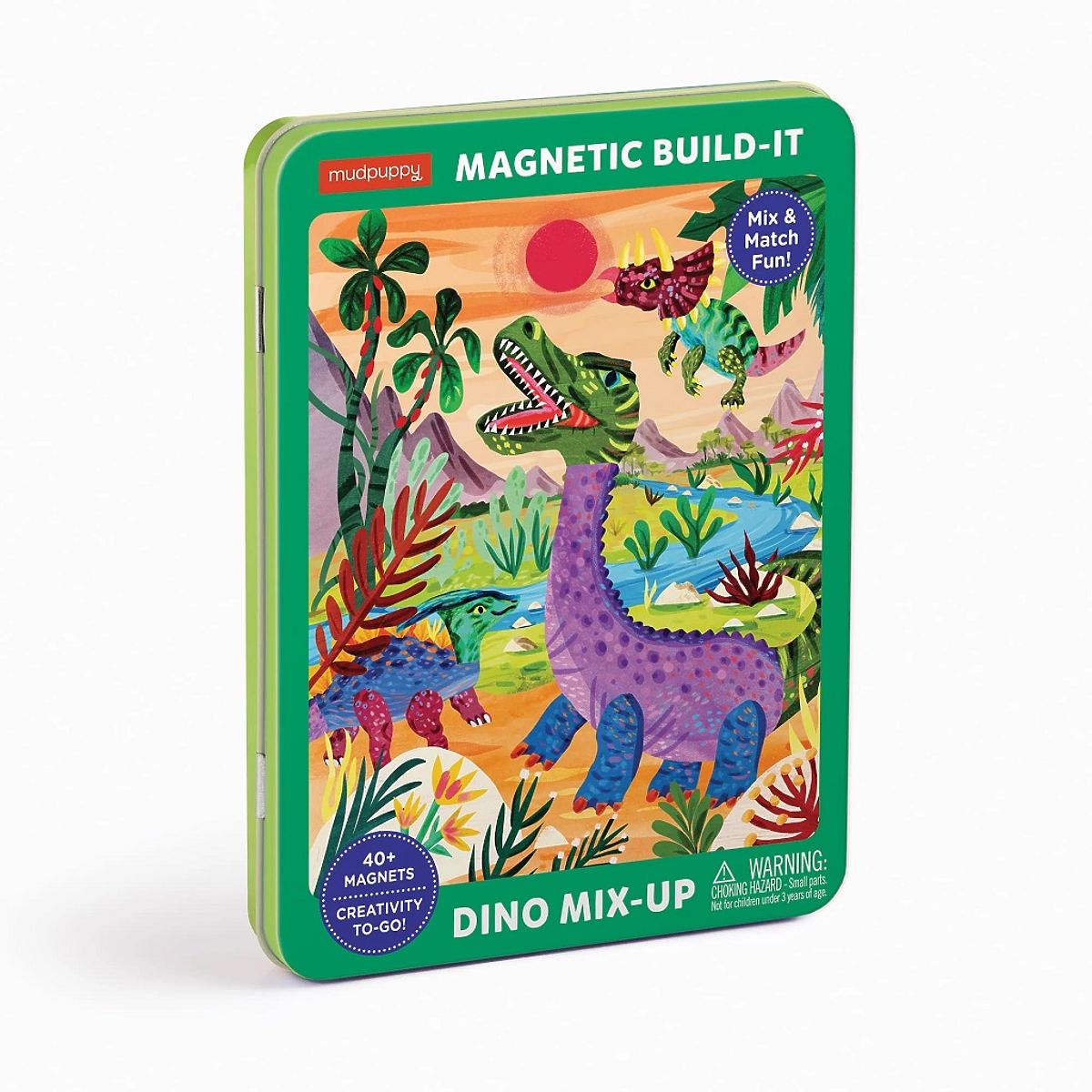 Magnetická sada obsahuje 2 ilustrované scény a více než 40 různých magnetů pro vytvoření vlastních imaginativních dinosaurů. Hra nabízí hodiny nápaditého hraní. Obal se snadno čistí. Perfektní i jako cestovní hračka. Hlavní vlastnosti: skvělá cestovní hračka v kovové krabičcenatištěno netoxickými barvami40ks různých magnetů2 ilustrované scény