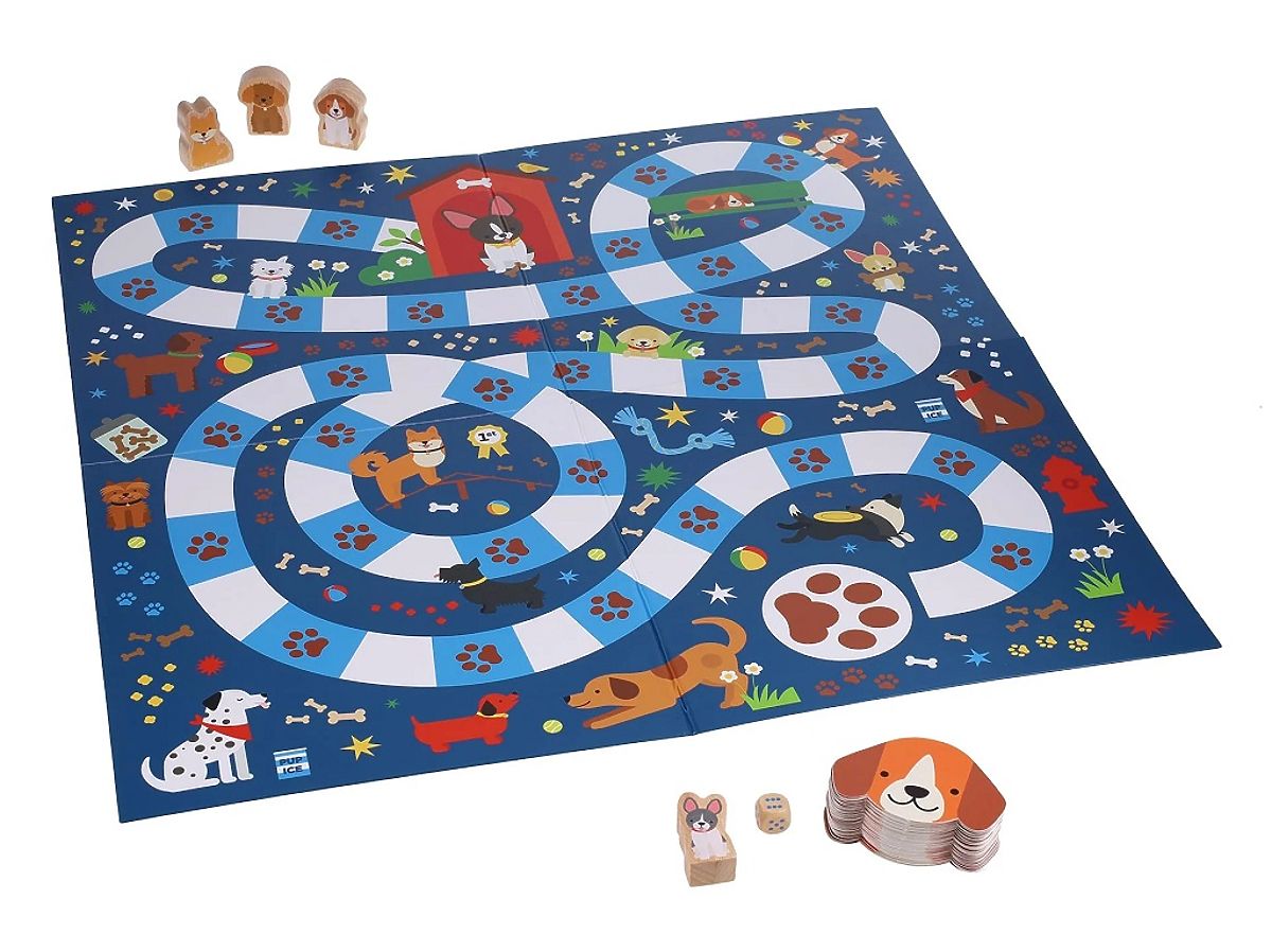 Táto akčná hra o chlpatých štvornohých kamarátoch vás udrží v strehu! Otestujte svoje znalosti o psoch a predveďte všetko, čo súvisí so psom, keď pohybujete svojou psou postavou po hracej ploche. Vieš štekať ako šťastný pes? Dokážeš sa naháňať za chvostom ako šteňa? Buďte prvý, kto dorazí do cieľa. Perfektný pre rodiny, priateľov a milovníkov psov, ale aj pre všetkých fanúšikov doskových hier. Priemerná doba hrania je 20 minút. Hra je vhodnou pomôckou na precvičovanie angličtiny. Doskové hry sú skvelým spôsobom, ako deti naučiť hodnotám trpezlivosti, sústredenia, vyhrávania a prehrávania s gráciou a ako sa hrať s ostatnými. U mladších detí navyše rozvíja pohyb po hracej ploche, koordináciu ruka-oko a zručnosť. Postup hry: hráč, ktorý si naposledy pohladil psa, ide ako prvý. Hoďte kockou a posuňte svoj dielik psej postavy o zobrazený počet polí. Pokiaľ pristanete na psej labke, vezmete si kartu. Karta vás požiada, aby ste buď otestovali svoje znalosti o psoch, alebo predviedli niečo súvisiace so psom – napríklad štekanie ako šťastný pes alebo naháňanie chvosta ako šteňa! Dokončite akciu a môžete presunúť svoju figúrku o počet polí uvedených na karte. Pokiaľ to nedokážete, nie je to žiadny problém, jednoducho hra pokračuje ďalším hráčom, ktorý je na rade. Ten, kto sa ako prvý dostane do cieľa, vyhráva hru! Hra obsahuje 150 herních karet (50 na jazyk – angličtina, francouzština, španělština), 4 dřevěné figurky psích postaviček, 1 ilustrovaný herní plán, 1 dřevěnou kostku. Dřevěné figurky a raznice jsou vytvořeny ze dřeva s certifikací FSC®. Obal, hrací deska a herní karty jsou vytištěny na papír FSC® pomocí rostlinných inkoustů. Hlavní vlastnosti: průměrná doba hry 20 minutvyrobeno z recyklovaných materiálů potištěno rostlinnými inkousty50 karet na jazyk - angličtina, francouzština, španělština hra pro 2 až 4 hráčeod 4+