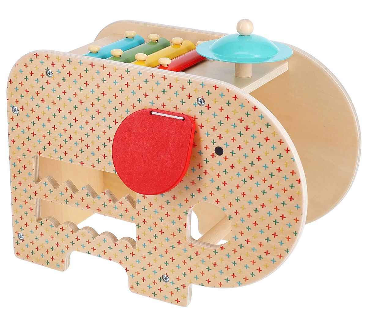 Seznamte své ratolesti s rytmem a zvukem! Všestranný dřevěný slon obsahuje pět různých možností hry. Můžete jeho uši nechat klapat, hrát na xylofon, bouchat do bubínku, klepat na činel či paličkou využít trojitého guira - poslouchejte jedinečné zvuky a bavte se! Tato dřevěná hudební hračka pomůže rozvíjet jemné motorické dovednosti Vašeho děťátka jako např. koordinaci ruka-oko, sluchové učení a rozlišování zvuků. Volný způsob hry navíc podporuje sebevyjádření, rozhodování a nezávislost. Hlavní vlastnosti: rozvíjí jemnou motoriku a kreativituhravý úvod do světa zvuku a rytmuklapky xylofonu vydávají odlišné tónyvyrobeno ze 100% FSC® dřevaoriginální a funkční design Značka a certifikát FSC® (Forest Stewardship Council) zaručuje, že dřevo, ze kterého byl produkt vyroben, nebylo vytěženo nelegálně a pochází z lesů obhospodařovaných šetrným či přírodě blízkým způsobem, ve kterém jsou dodržovány přísné environmentální a sociální požadavky. Značka FSC® na výrobku znamená, že svým nákupem pomáháte chránit lesy a podporujete šetrné, odpovědné či přírodě blízké hospodaření, díky kterému jsou naše lesy stabilnější, zdravější, mají přirozenou druhovou skladbu a lépe odolávají negativním následkům klimatických změn.