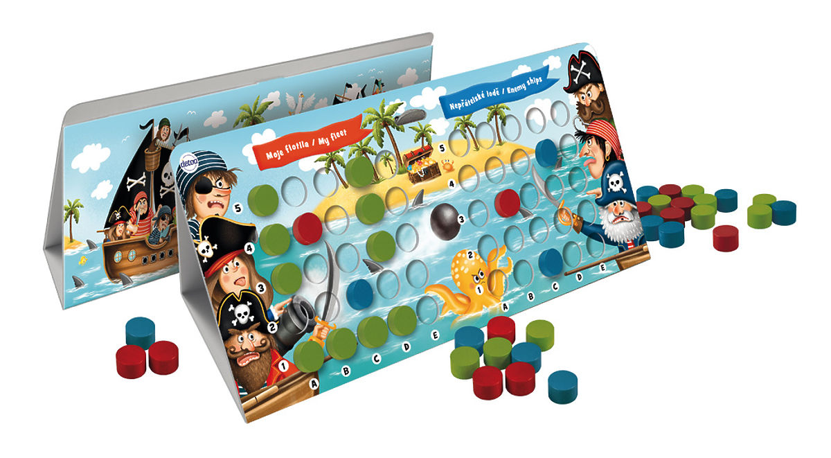 Originální rodinná hra pro děti i dospělé. Tato námořní bitva je epickou strategickou hrou pro dva až 6 hráčů, která přináší dobrodružství a taktiku na Váš stůl. V této pirátské námořní bitvě je vaším úkolem zničit nepřátelskou flotilu dříve, než jsou všechny Vaše lodě potopeny. V roli kapitána musíte připravit svoji bitevní strategii a dovést své námořníky k vítězství! Nasaďte flotilu, naplánujte svůj útok a bitva může začít. Tahle hra je nejen vizuálně poutavá, ale také nabízí skvělý herní zážitek. Výrobek splňuje požadavky EU na bezpečnost hraček a je vhodný pro děti od 5 let. Hra obsahuje: kartonový herní plán 2kscelkem 144 dílů Hlavní vlastnosti: počet hráčů: 2 - 6doba jedné hry: 20 - 40 minutvýrobek splňuje požadavky EU na bezpečnost hračekvhodný pro děti od 5 let