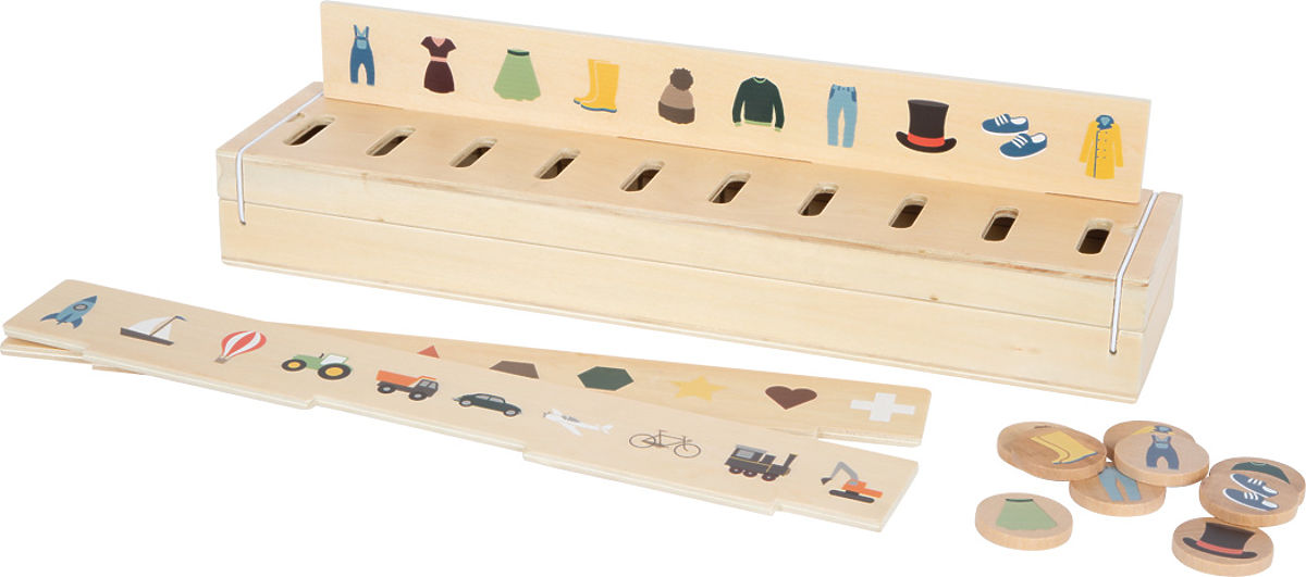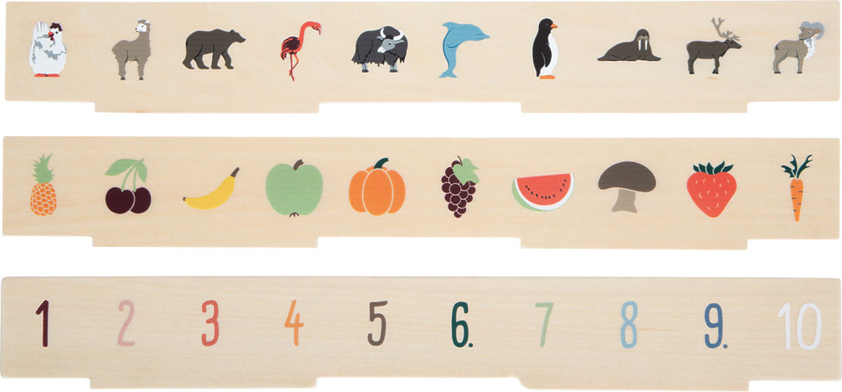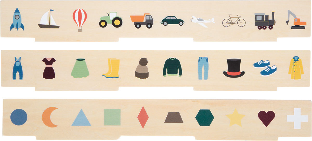 Tento dřevěný zásobník nabízí spoustu motivů k objevování se třemi oboustrannými vkládacími panely a 60 ks obrázkových žetonů na téma doprava, zvířata, čísla, .. více
